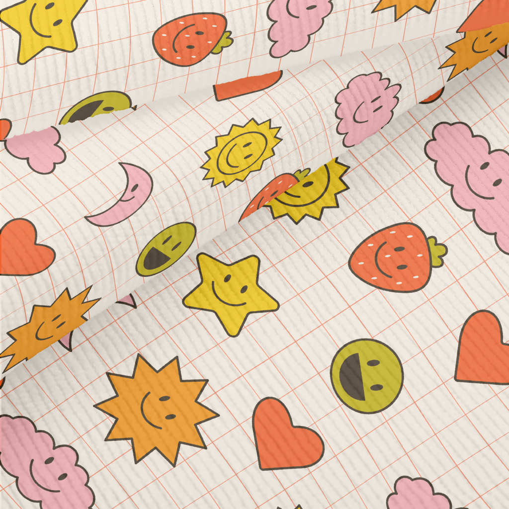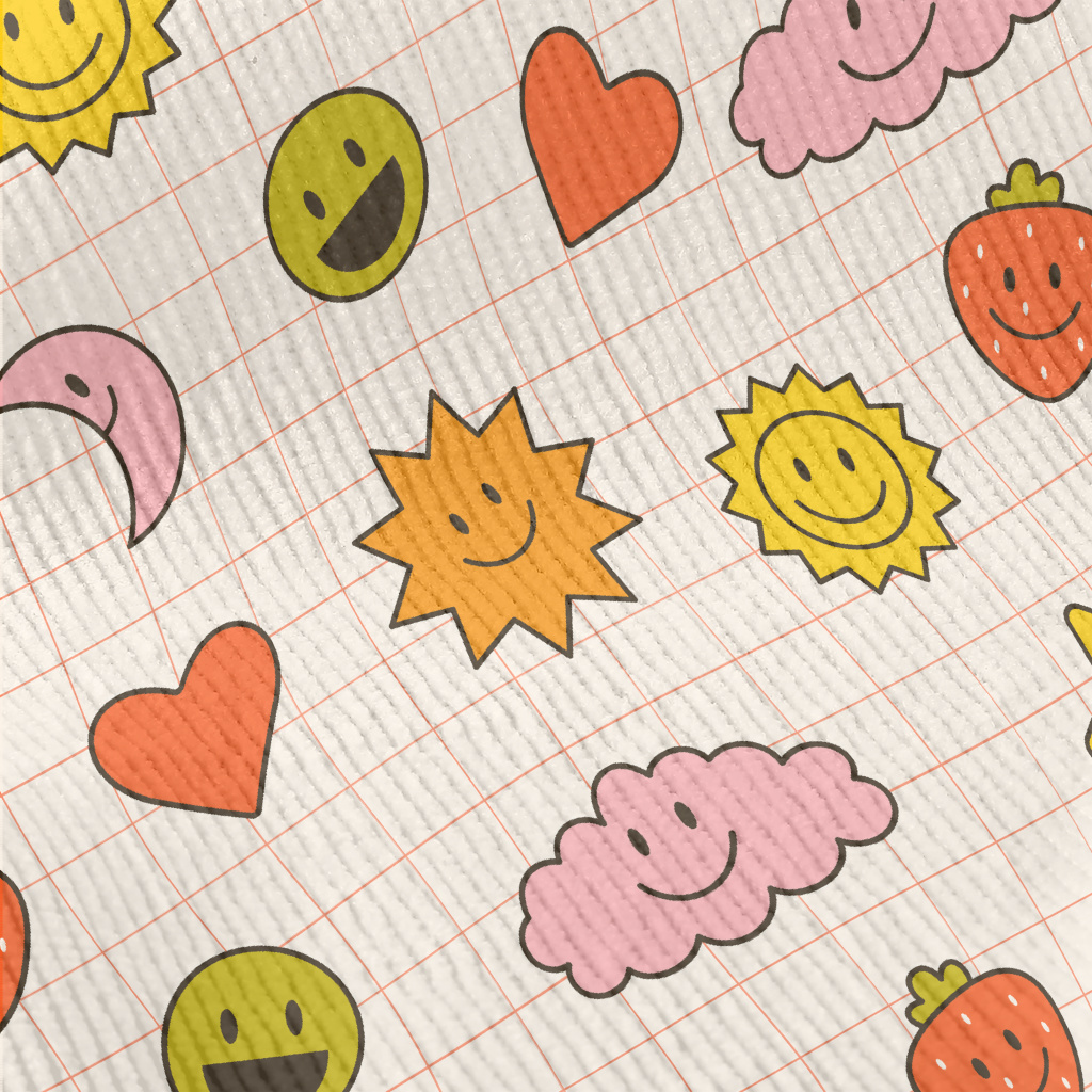可愛簡易的表情圖形燈芯絨(幅寬150公分)