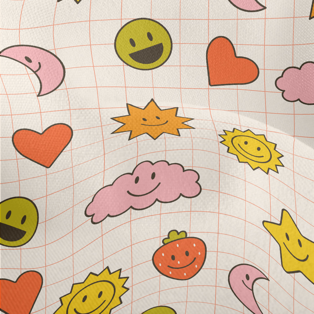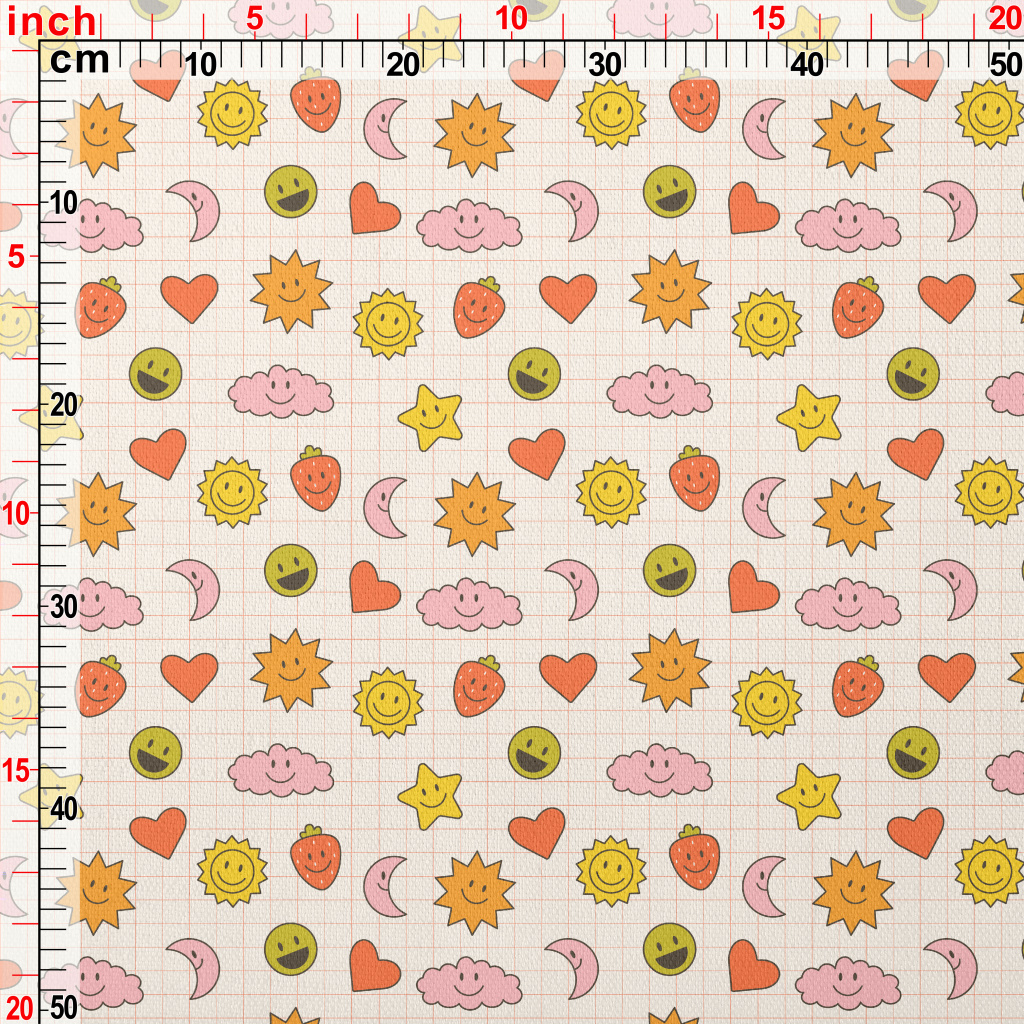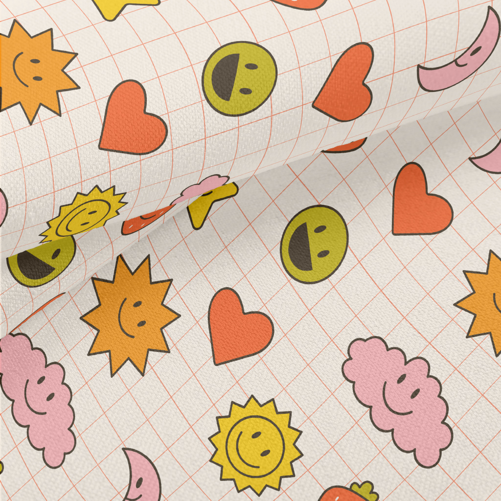 可愛簡易的表情圖形竹節麻(幅寬150公分)