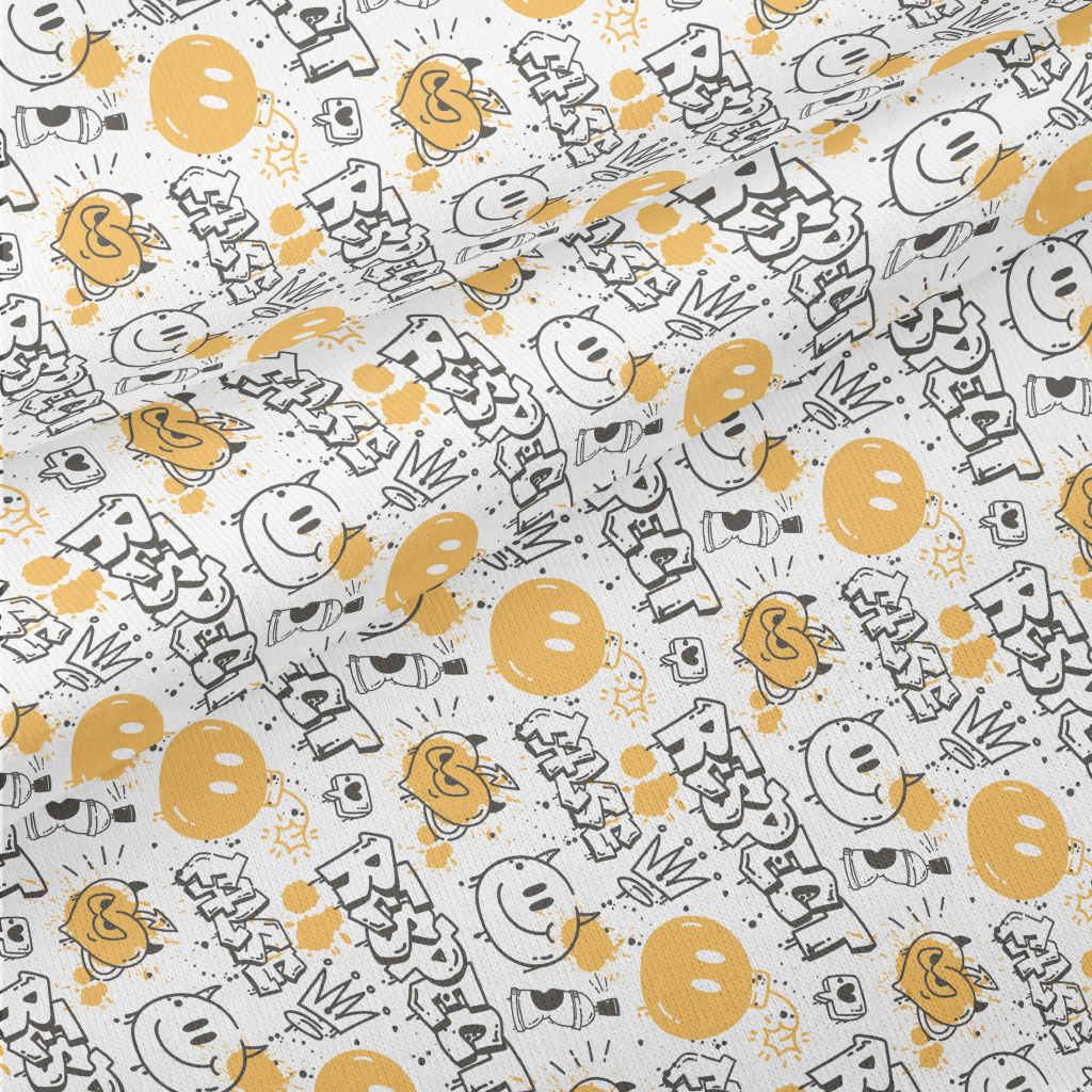 美式風格的笑臉英文字母仿棉布(幅寬150公分)