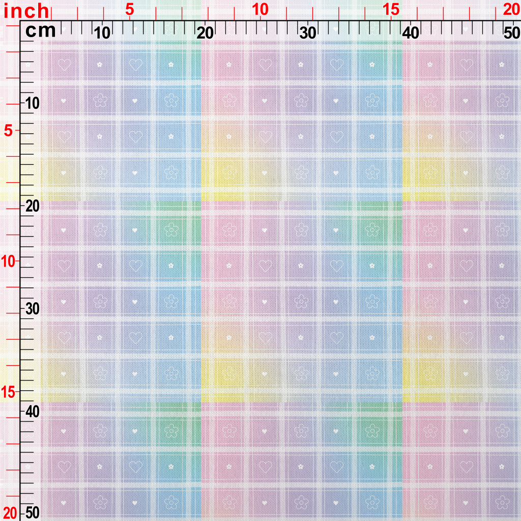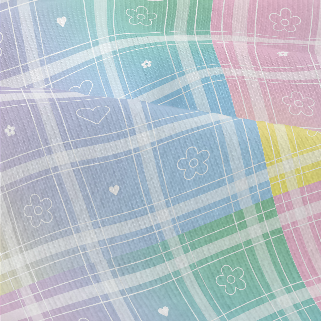 彩色鮮明的花朵格子仿棉布(幅寬150公分)