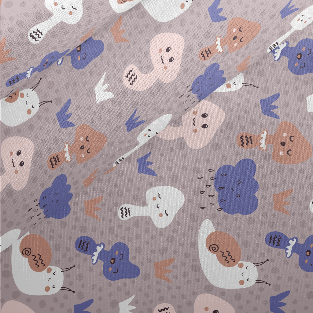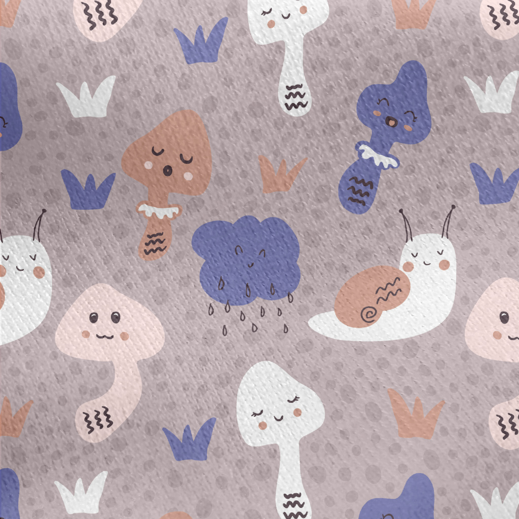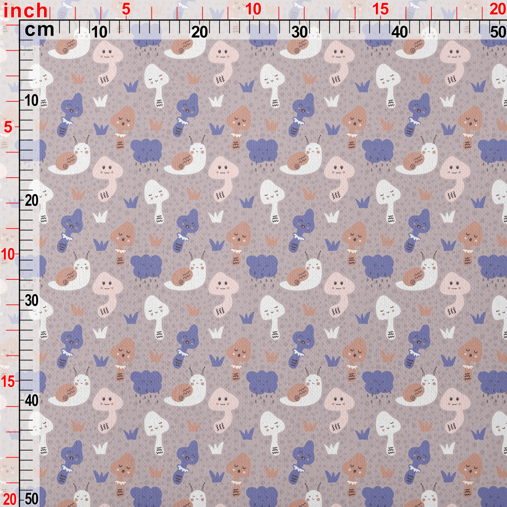 可愛簡易的蝸牛和香菇刷毛布(幅寬150公分)