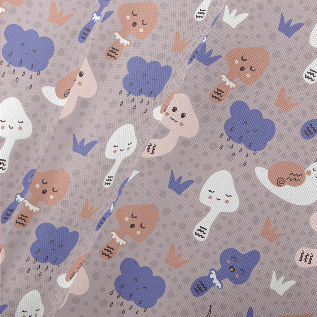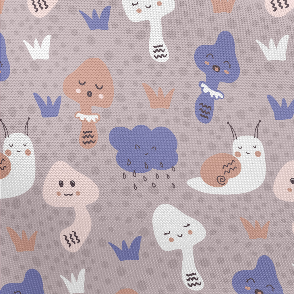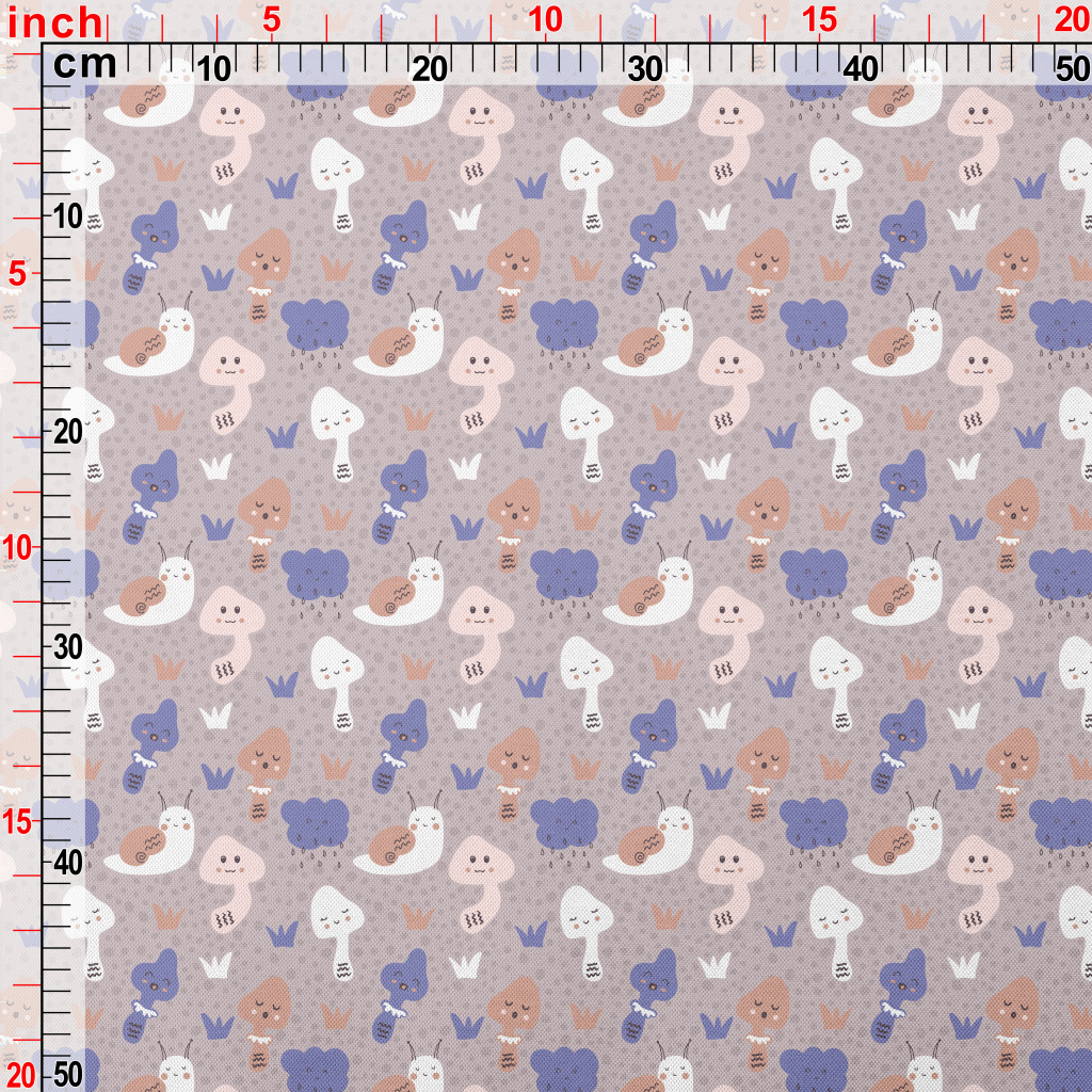 可愛簡易的蝸牛和香菇春亞紡(幅寬160公分)