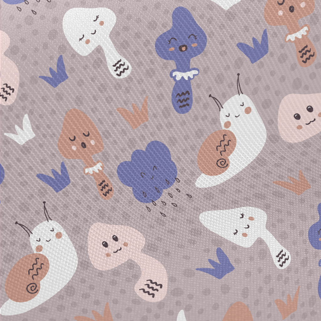 可愛簡易的蝸牛和香菇厚棉布(幅寬150公分)