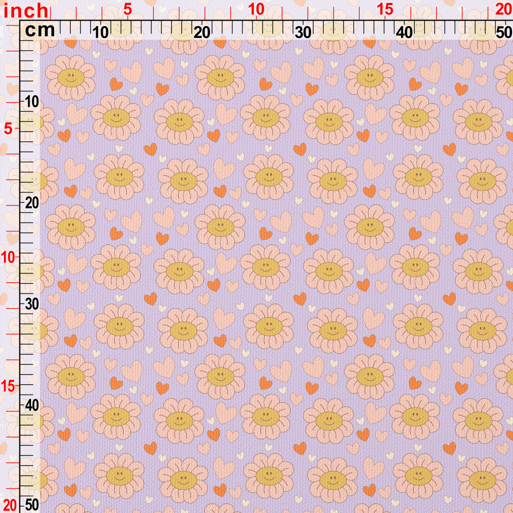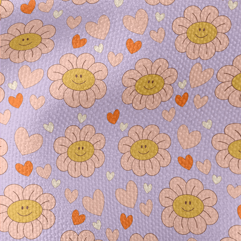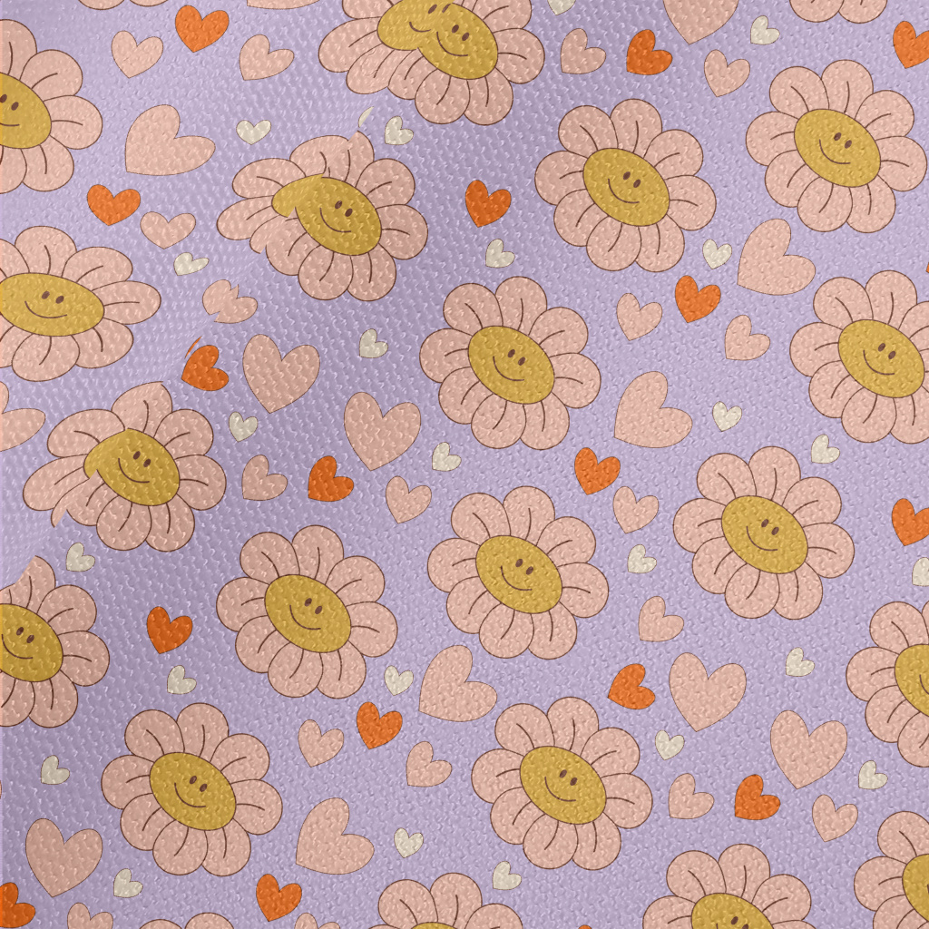 粉嫩微笑的花朵與愛心帆布(幅寬150公分)
