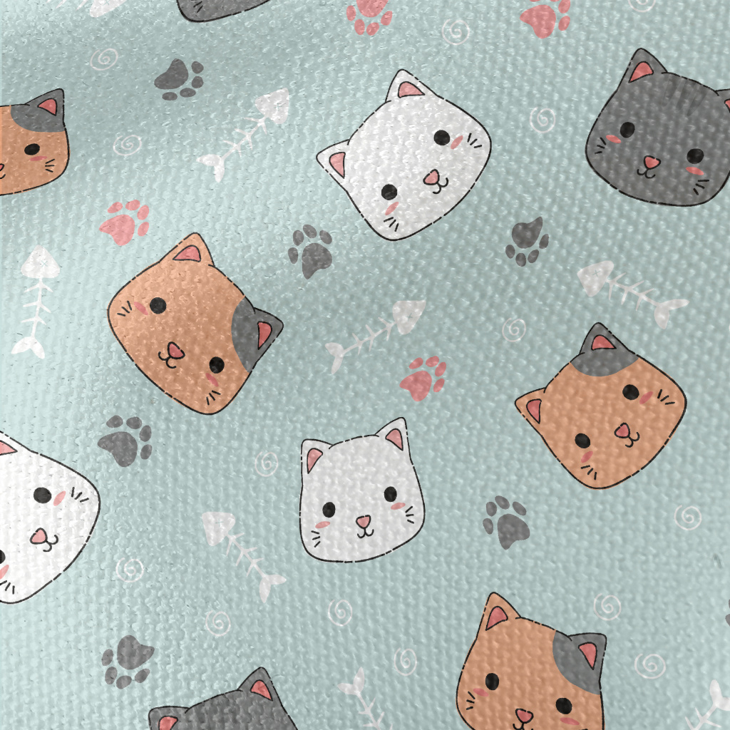 呆萌貓咪與魚骨頭帆布(幅寬150公分)