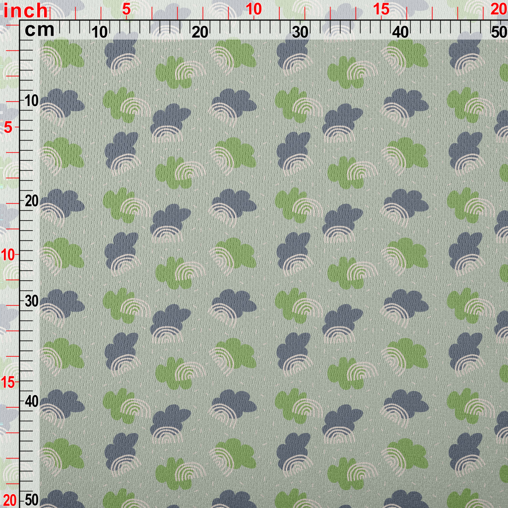 綠與藍的雲朵與線條彩虹鳥眼布(幅寬160公分)
