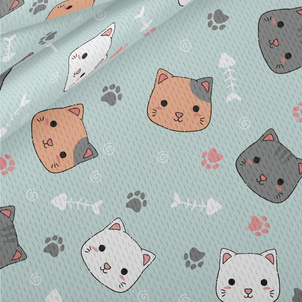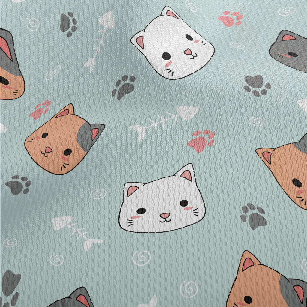 呆萌貓咪與魚骨頭鳥眼布(幅寬160公分)
