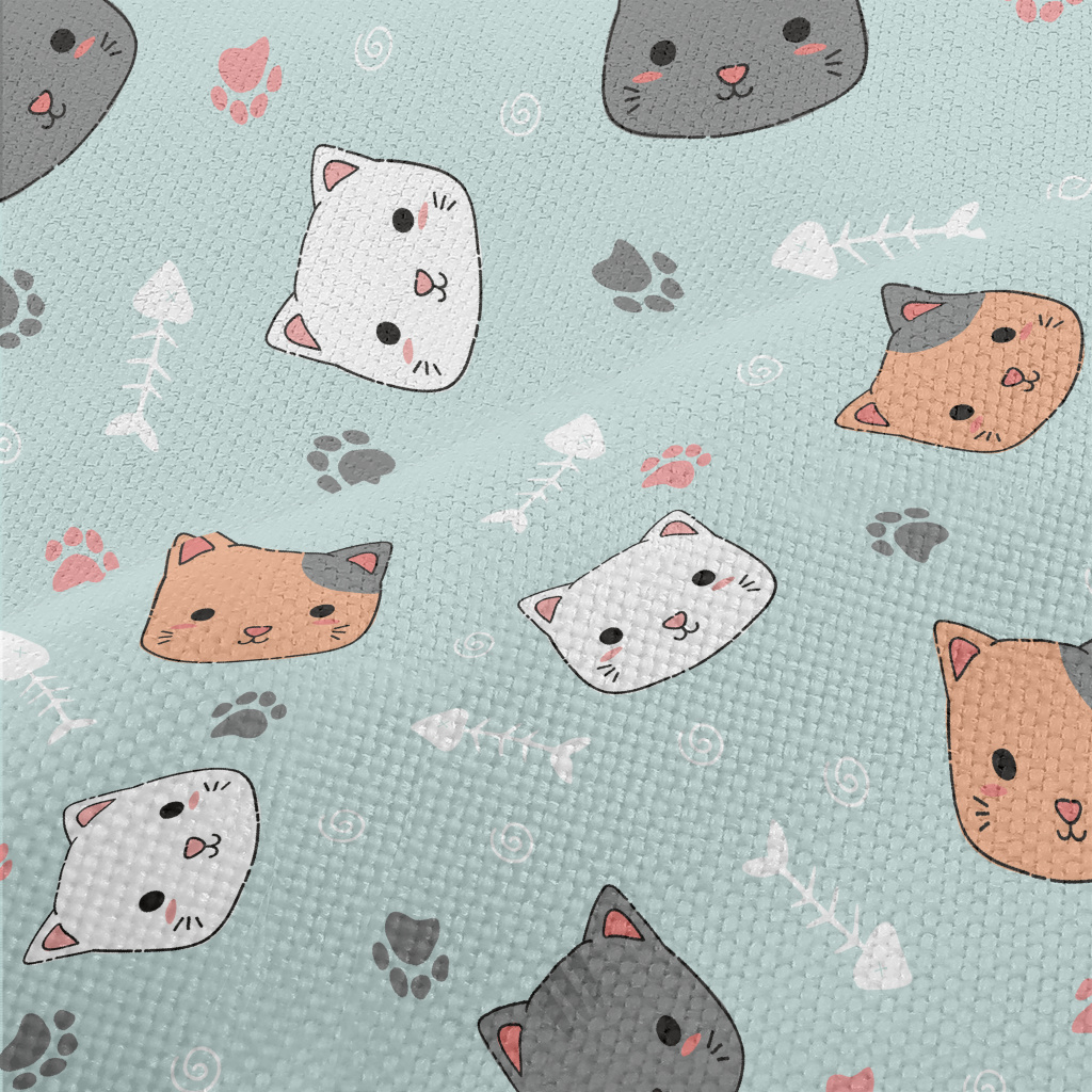 呆萌貓咪與魚骨頭麻布(幅寬150公分)