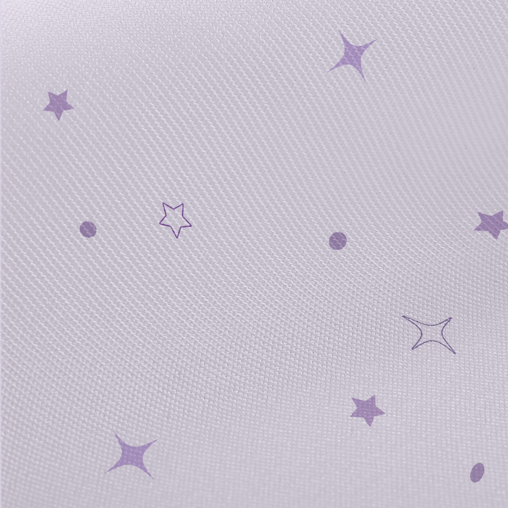 四散紫色的各種星星斜紋布(幅寬150公分)