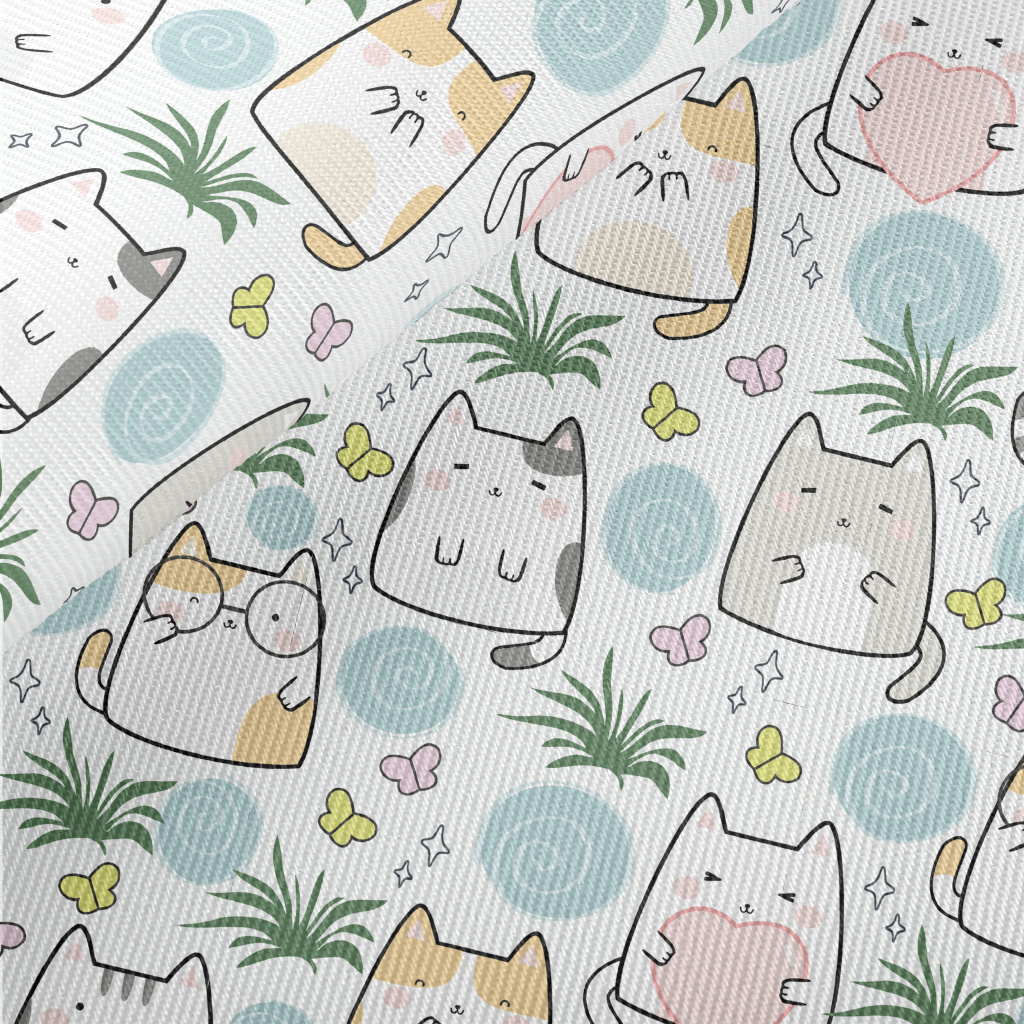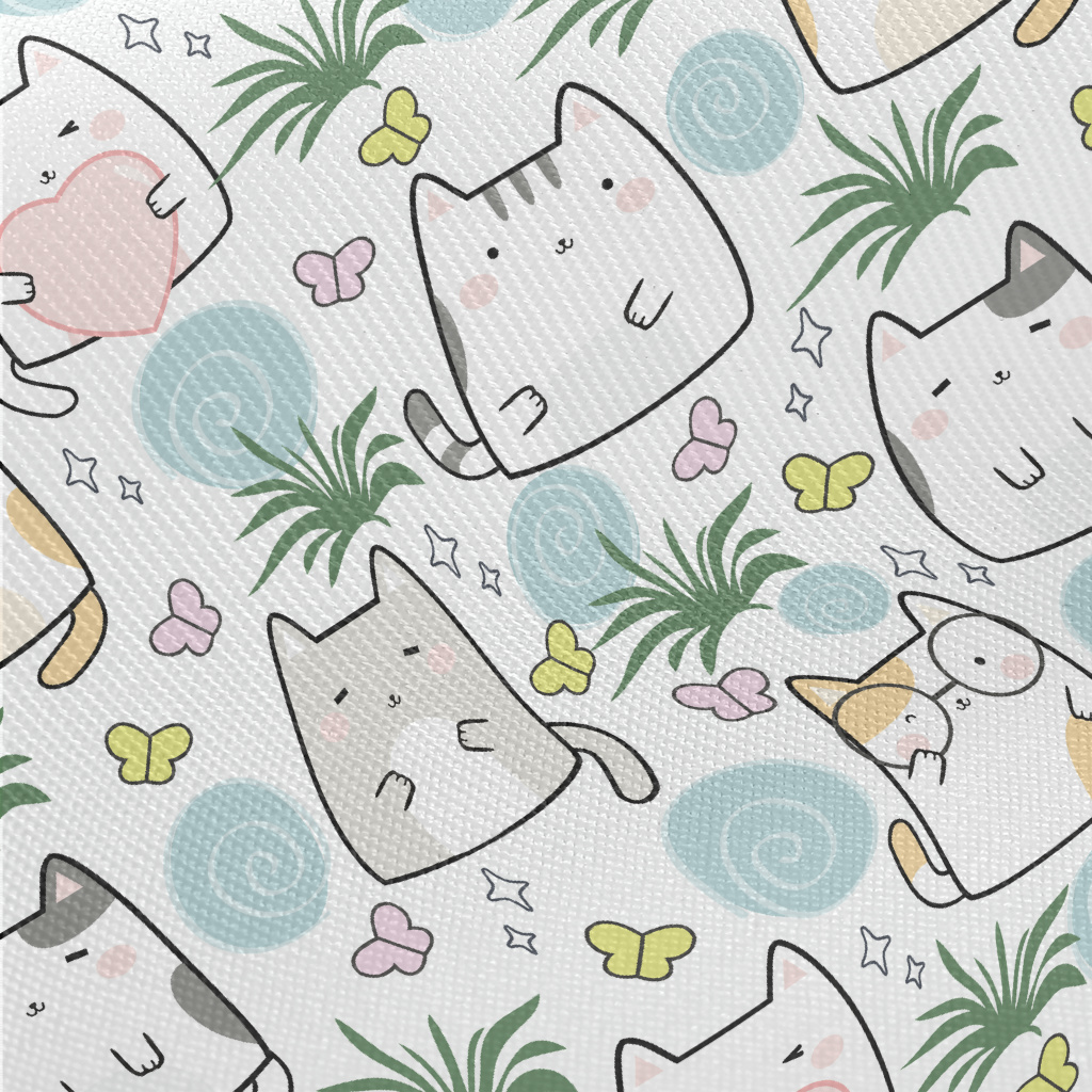 方形可愛的貓咪斜紋布(幅寬150公分)