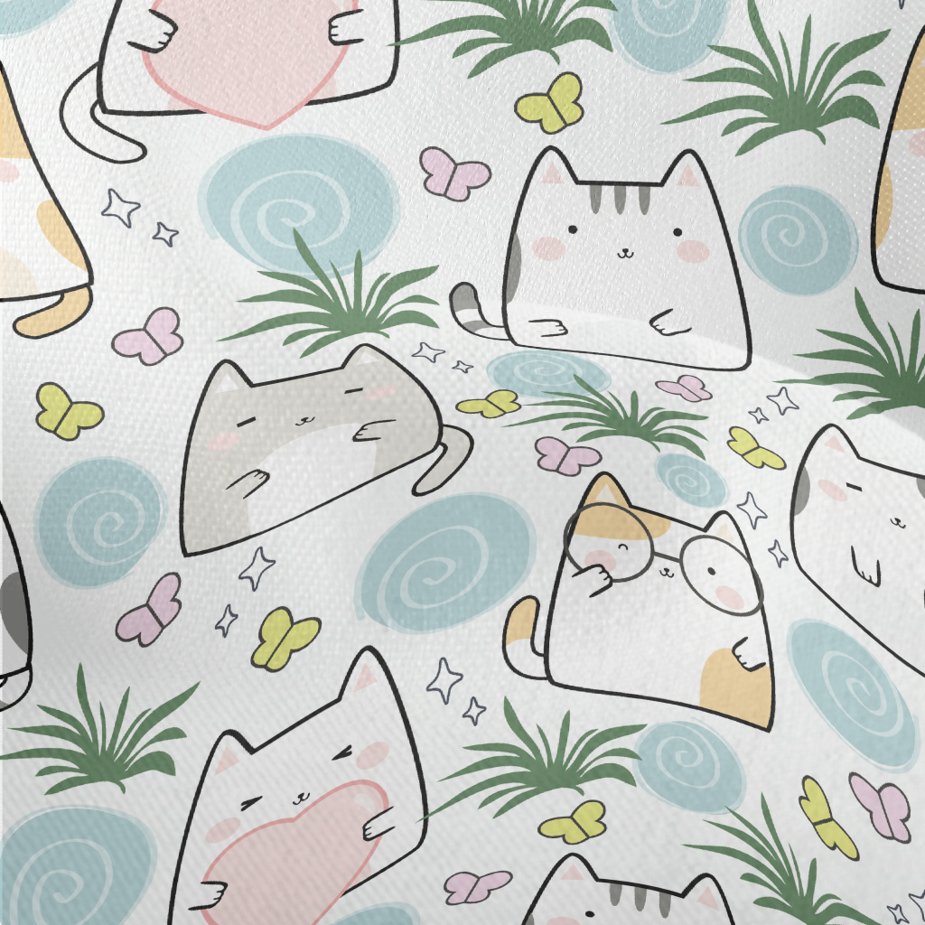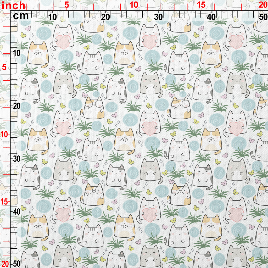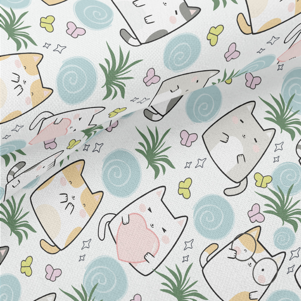 方形可愛的貓咪竹節麻(幅寬150公分)