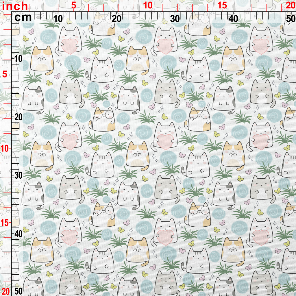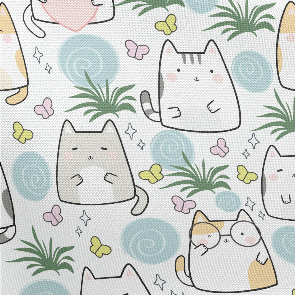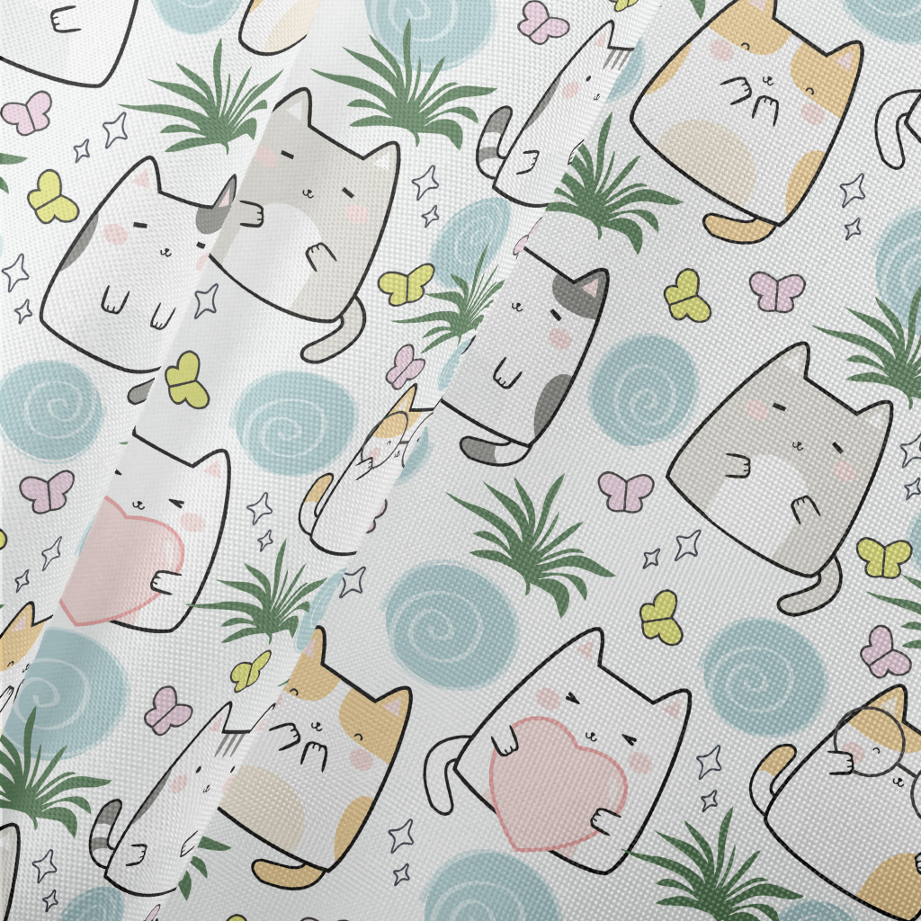 方形可愛的貓咪春亞紡(幅寬160公分)