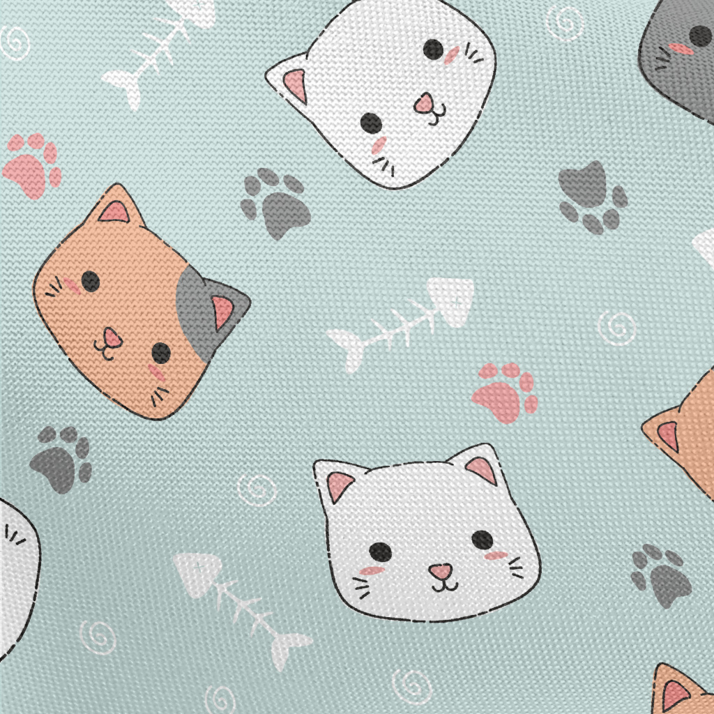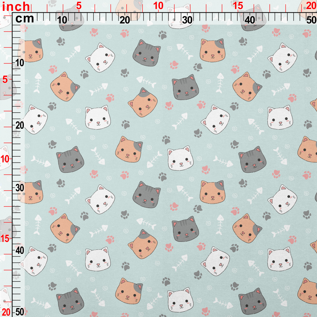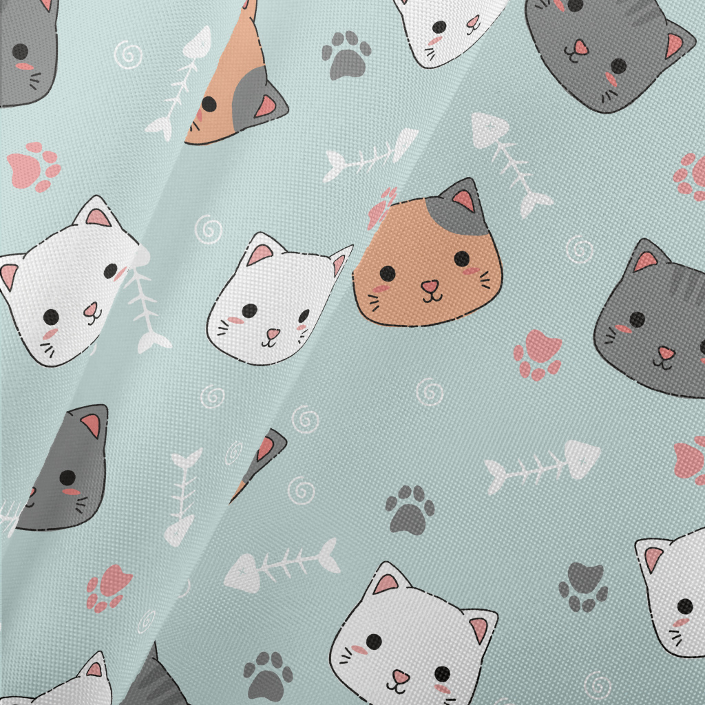 呆萌貓咪與魚骨頭春亞紡(幅寬160公分)