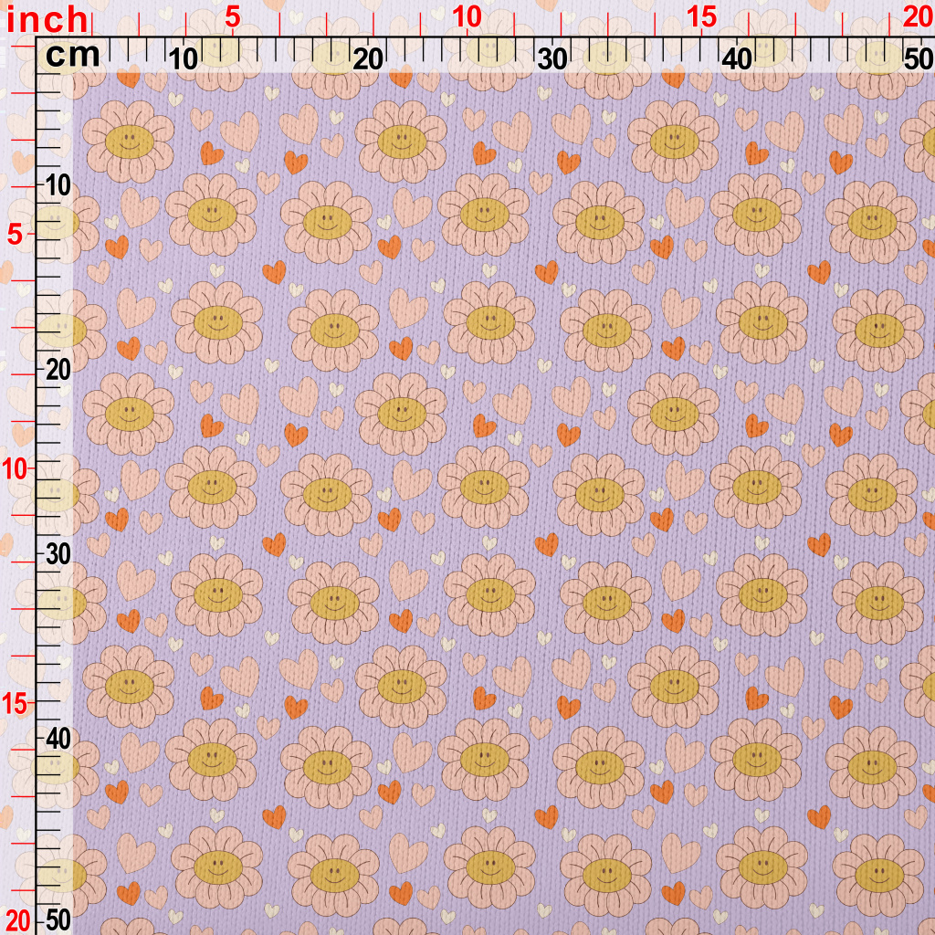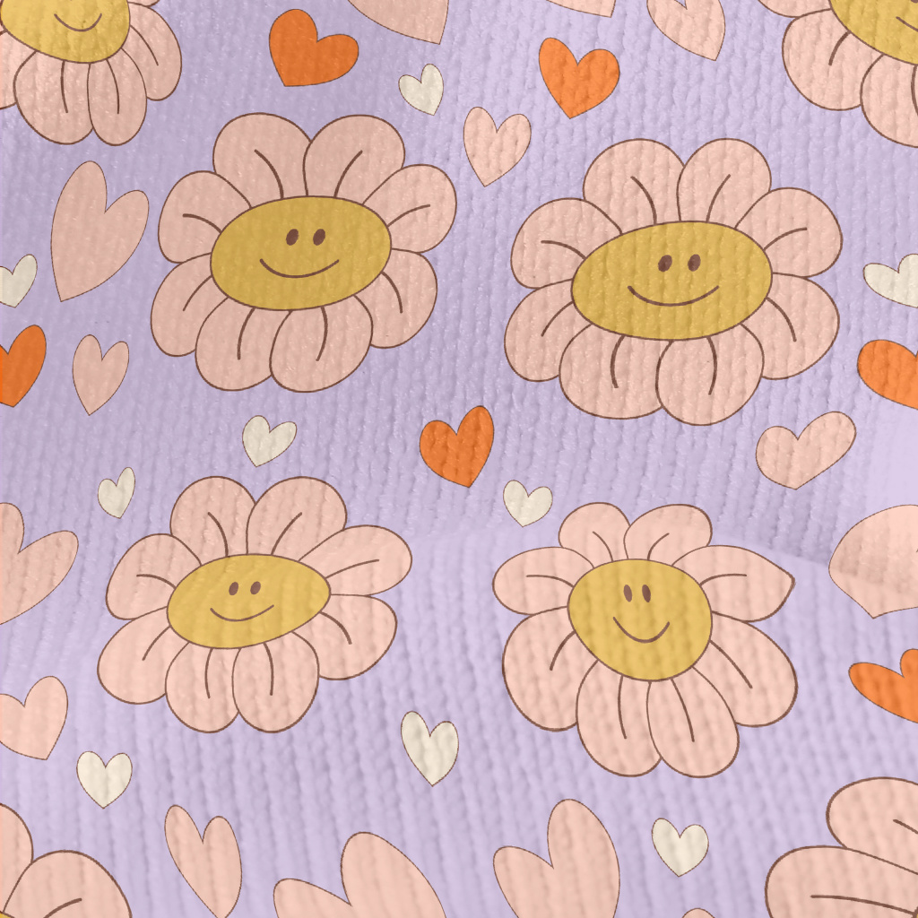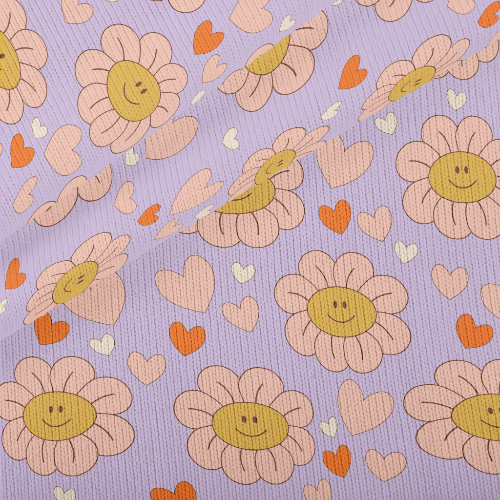粉嫩微笑的花朵與愛心仿毛衣布(幅寬150公分)