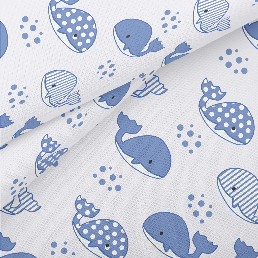 可愛不同造型的鯨魚薄棉布(幅寬150公分)