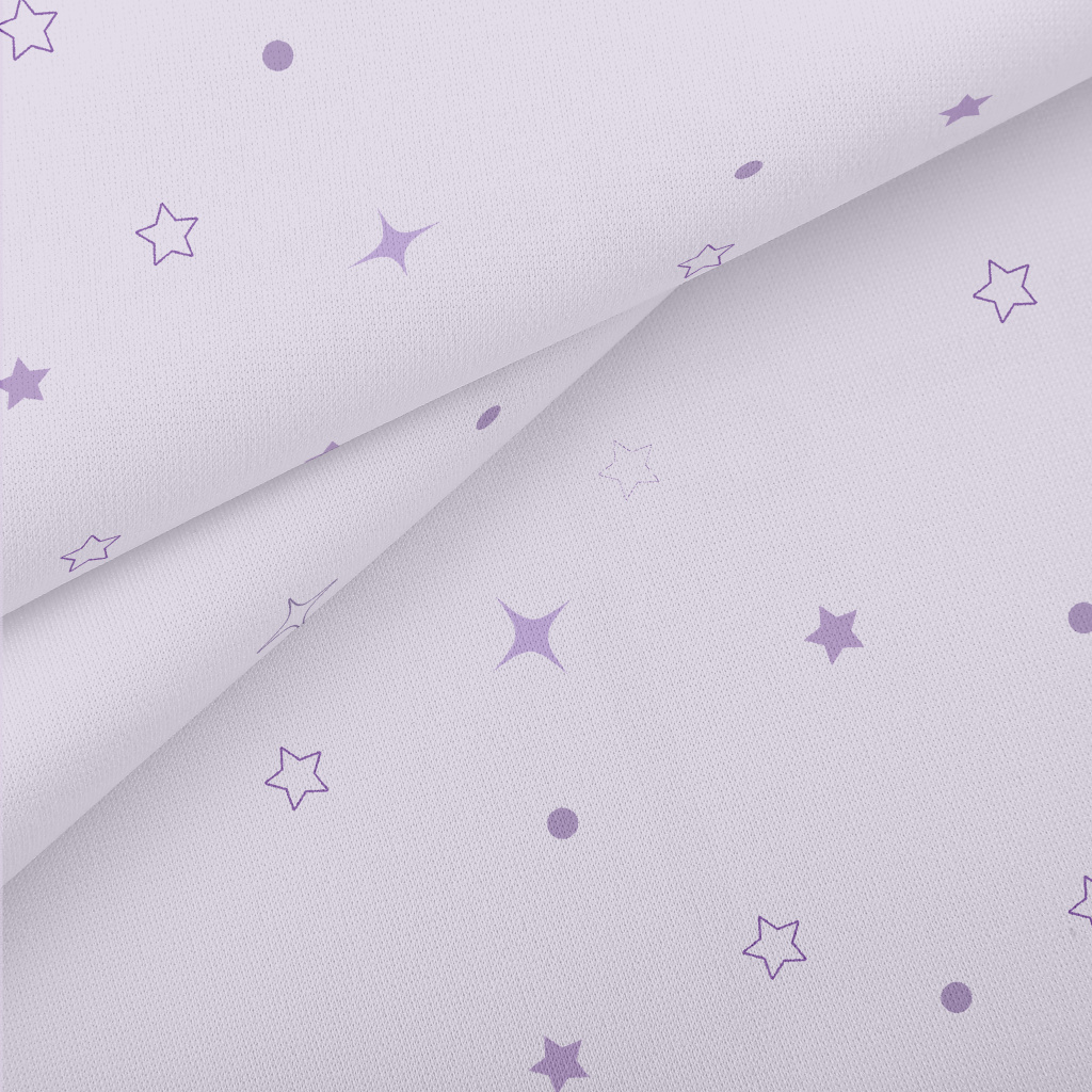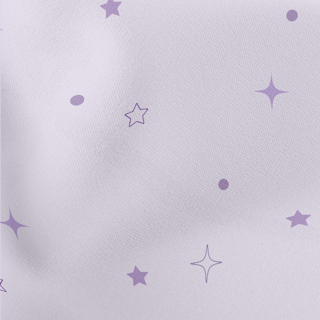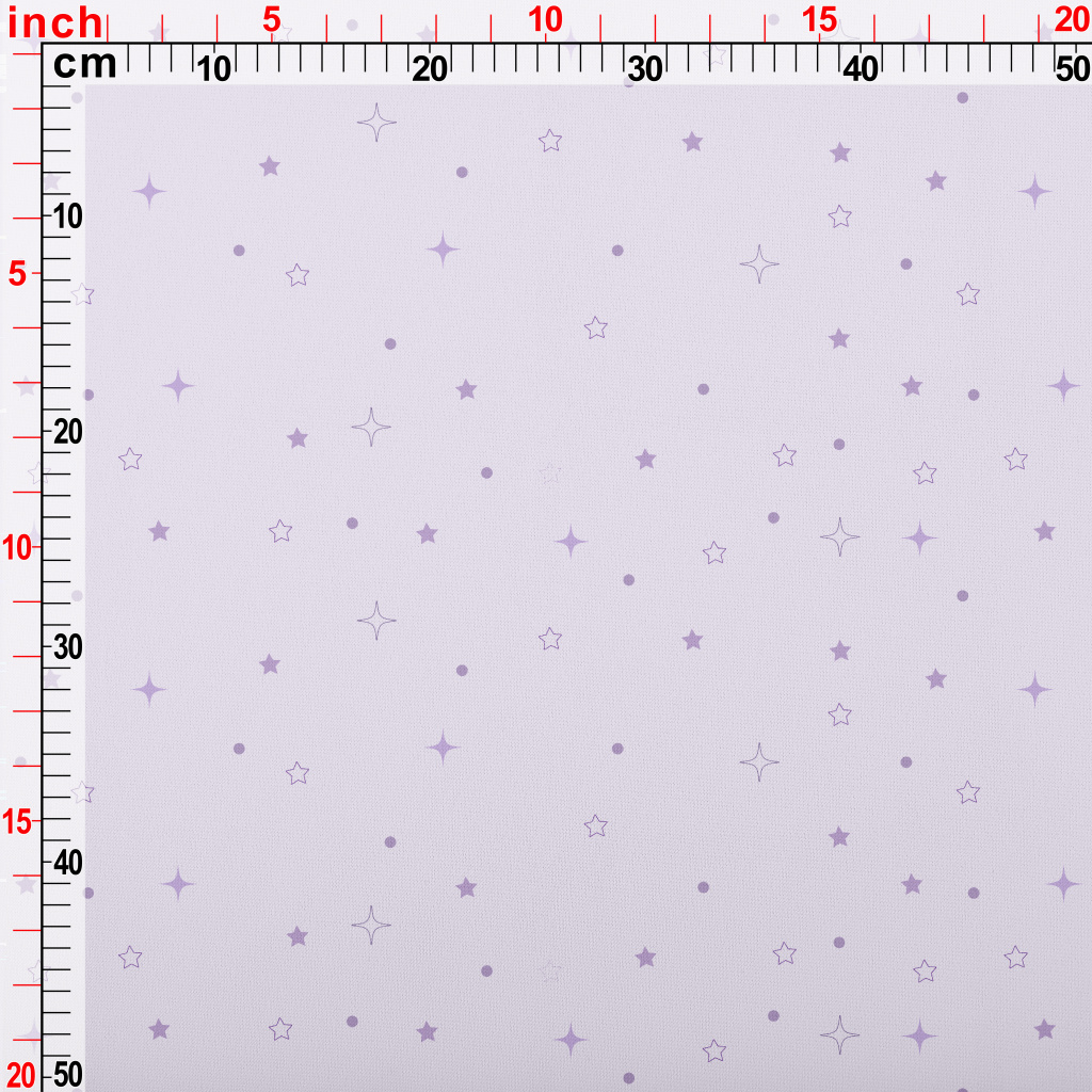 四散紫色的各種星星薄棉布(幅寬150公分)