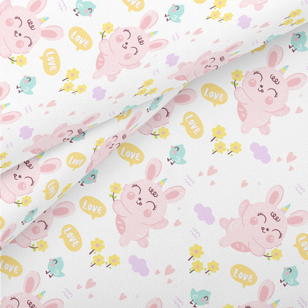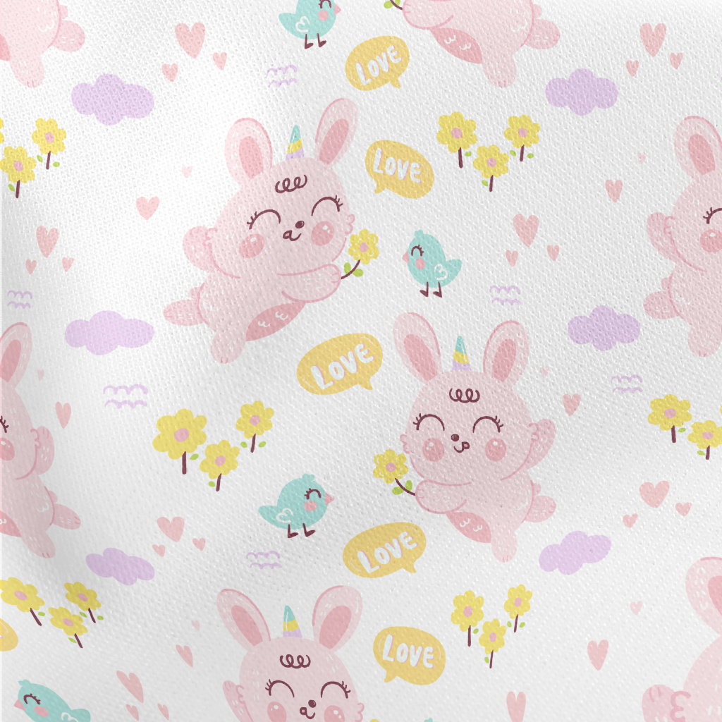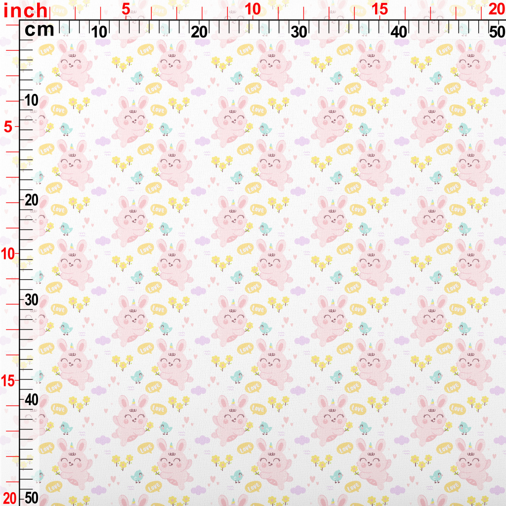 快樂悠哉的兔子和小鳥羅馬布(幅寬160公分)