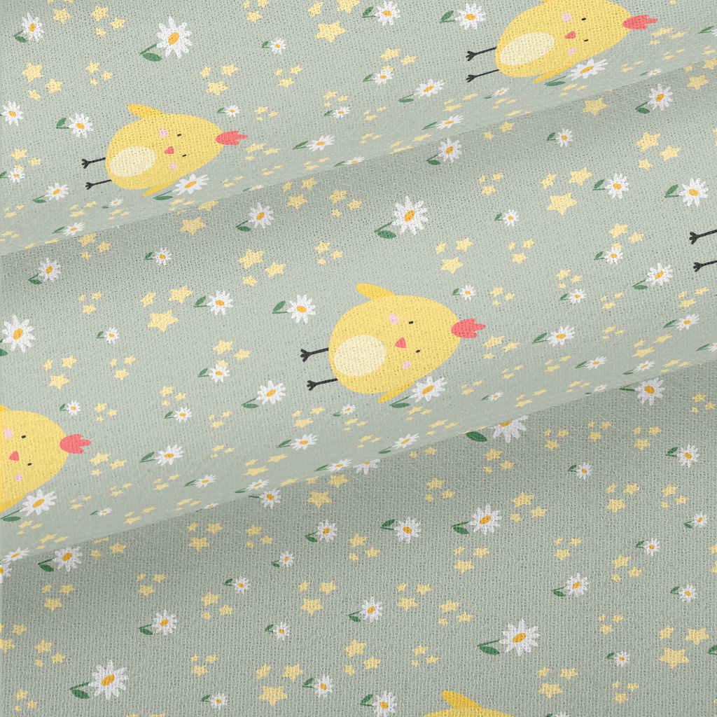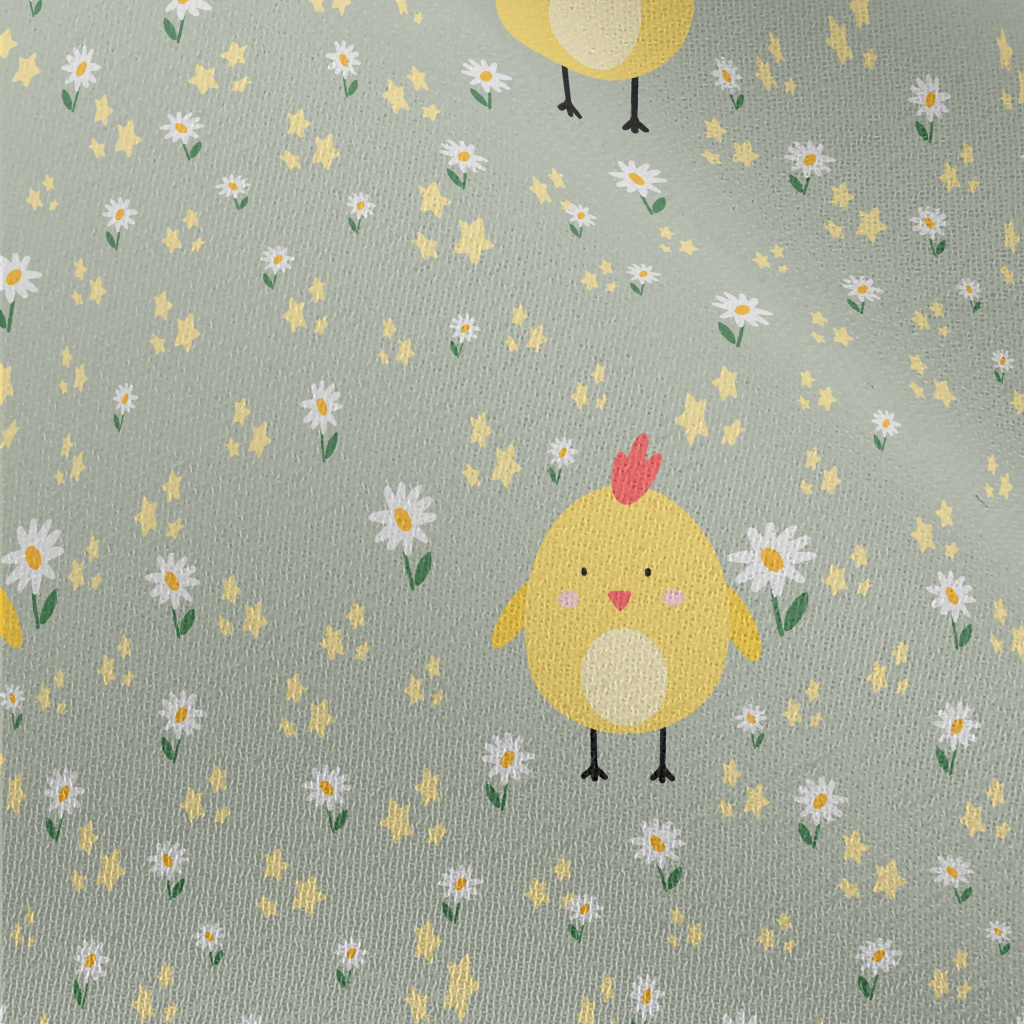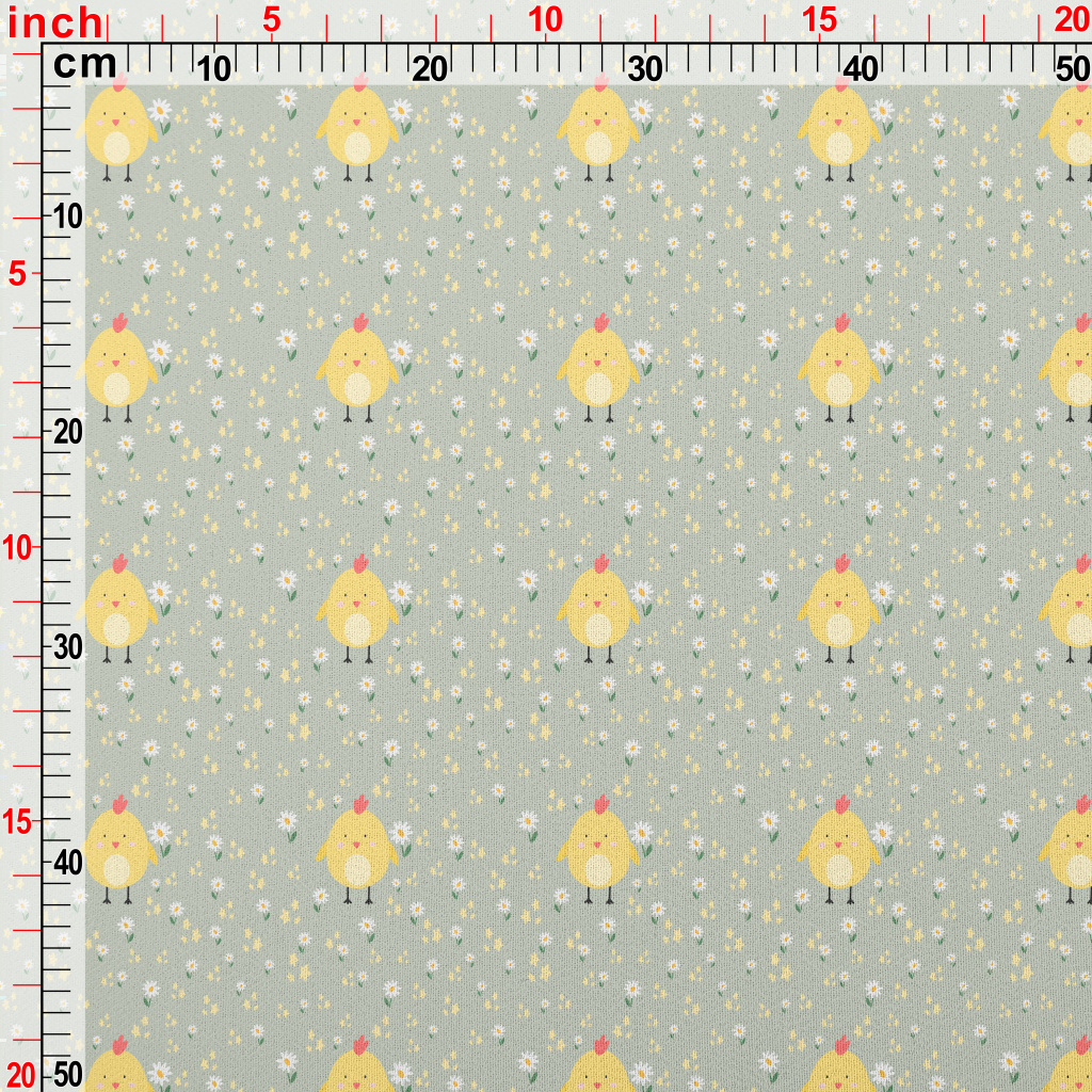 巨大黃色小雞和花朵雪紡布(幅寬150公分)