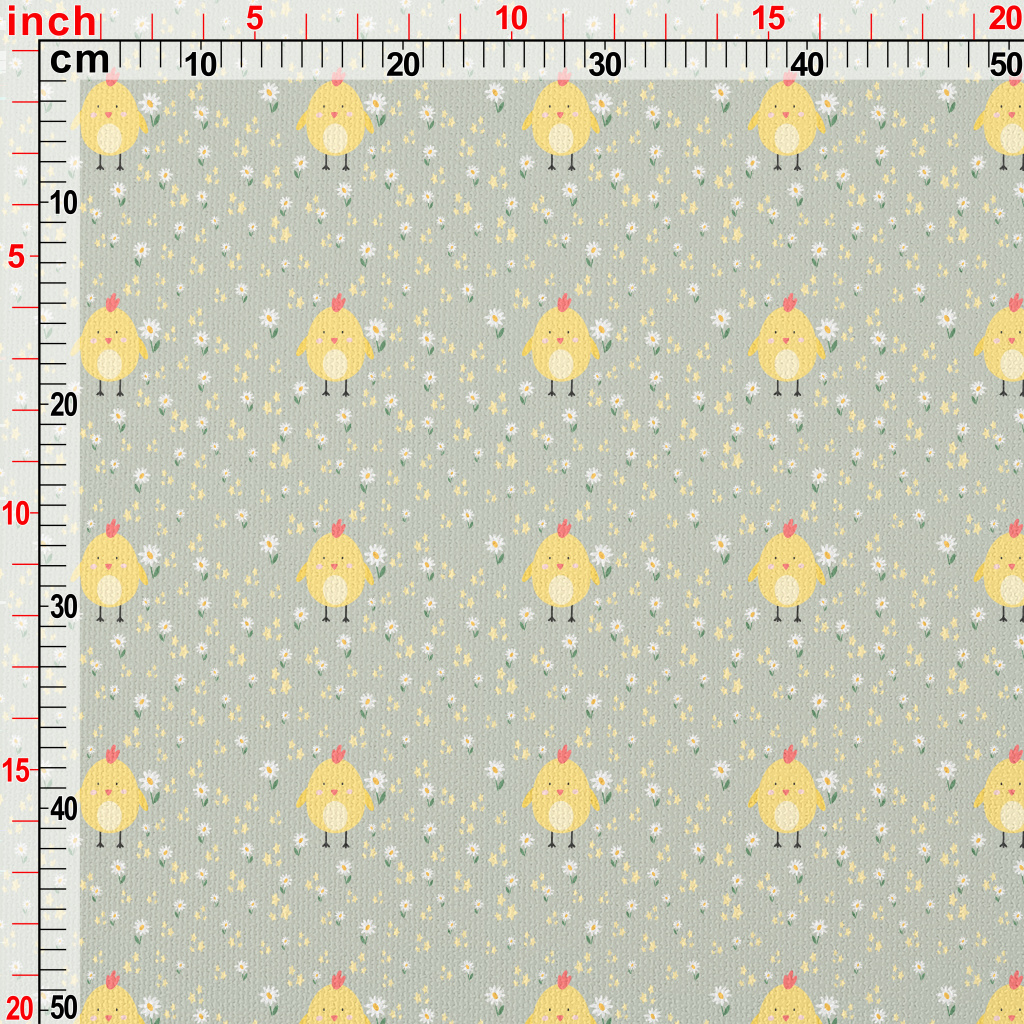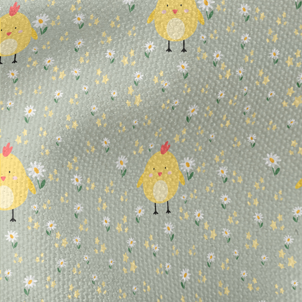 巨大黃色小雞和花朵帆布(幅寬150公分)