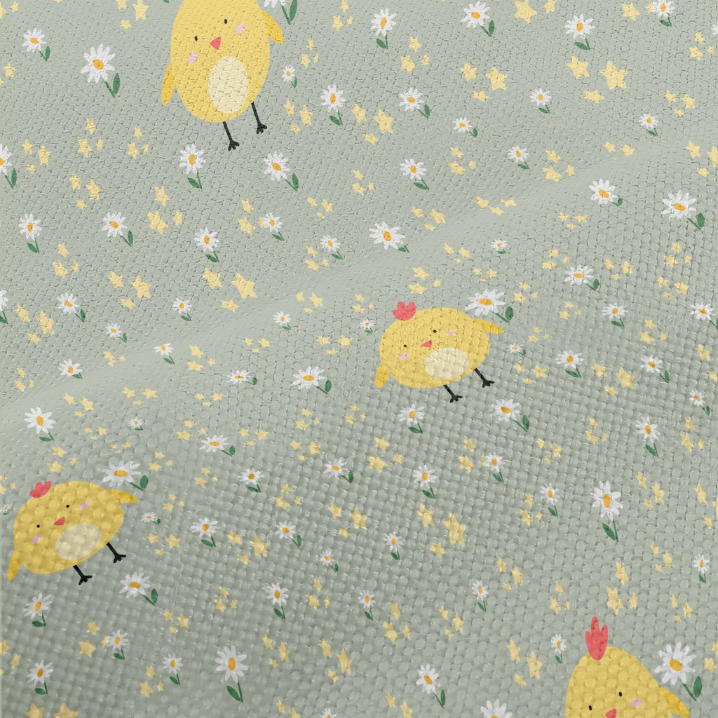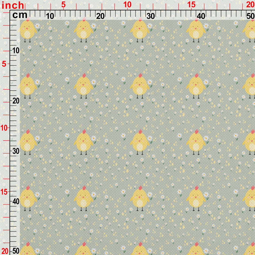 巨大黃色小雞和花朵麻布(幅寬150公分)