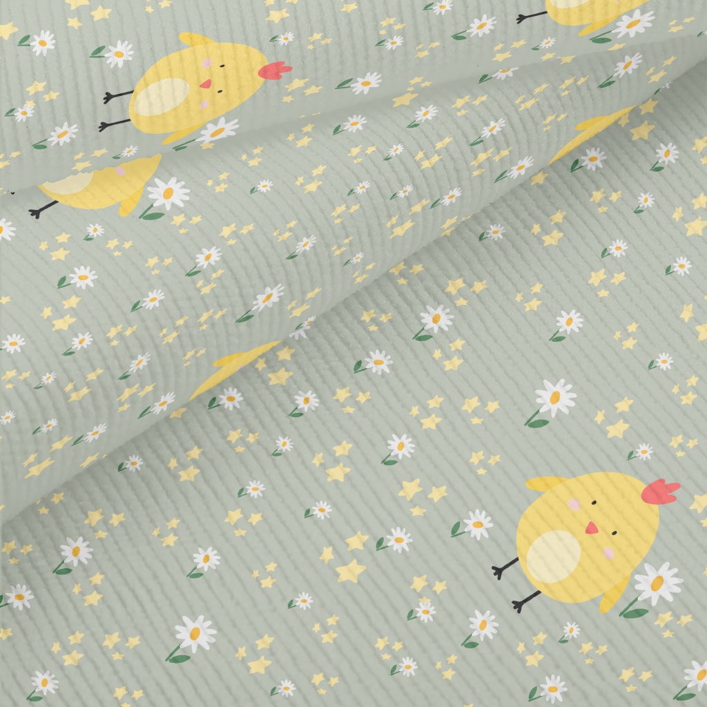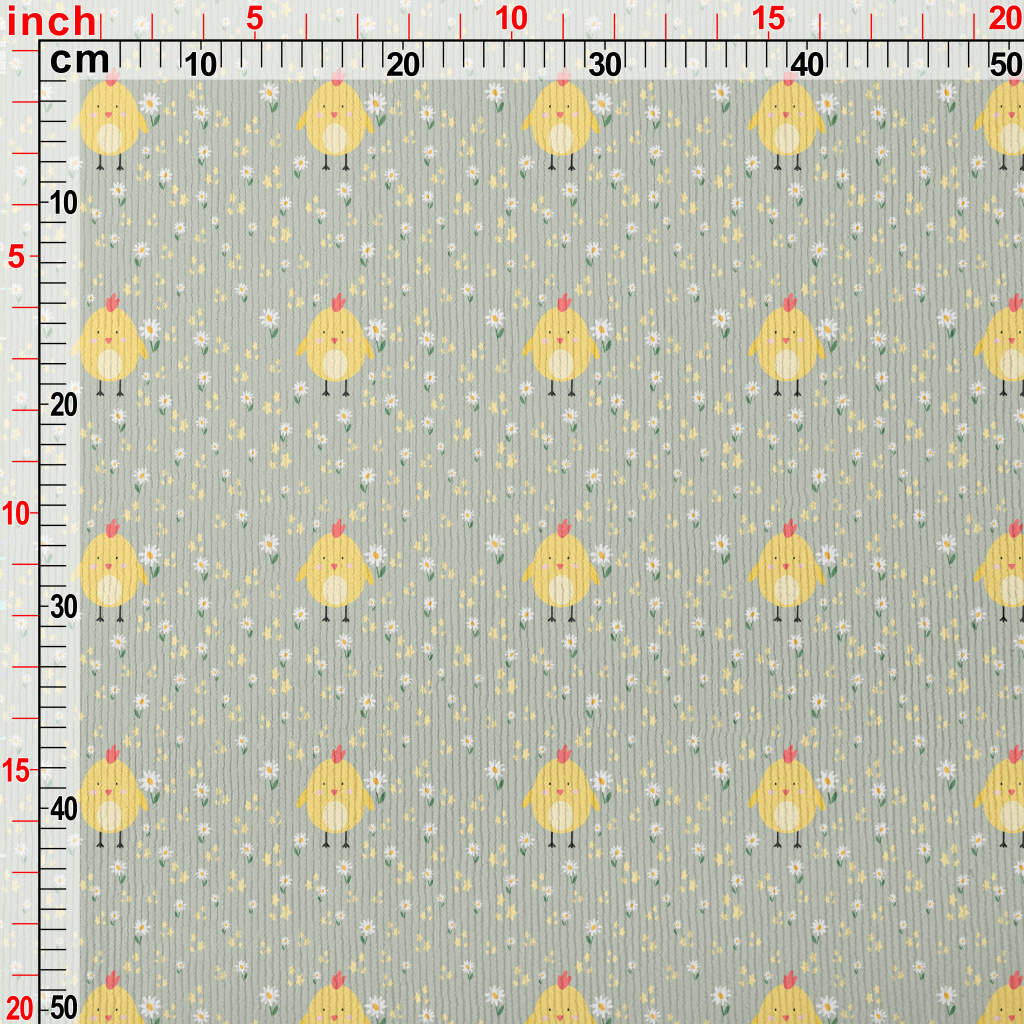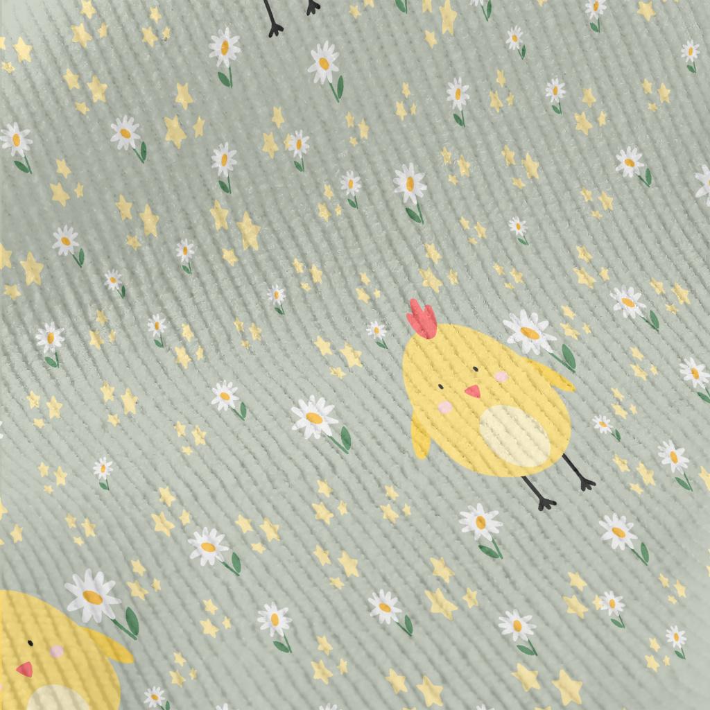 巨大黃色小雞和花朵燈芯絨(幅寬150公分)