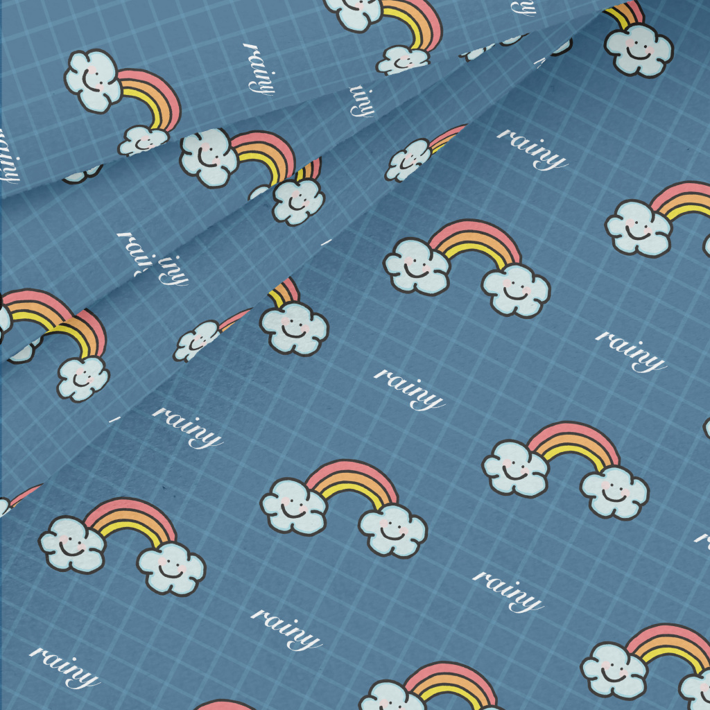 微笑雲朵與彩虹水晶絨(幅寬160公分)