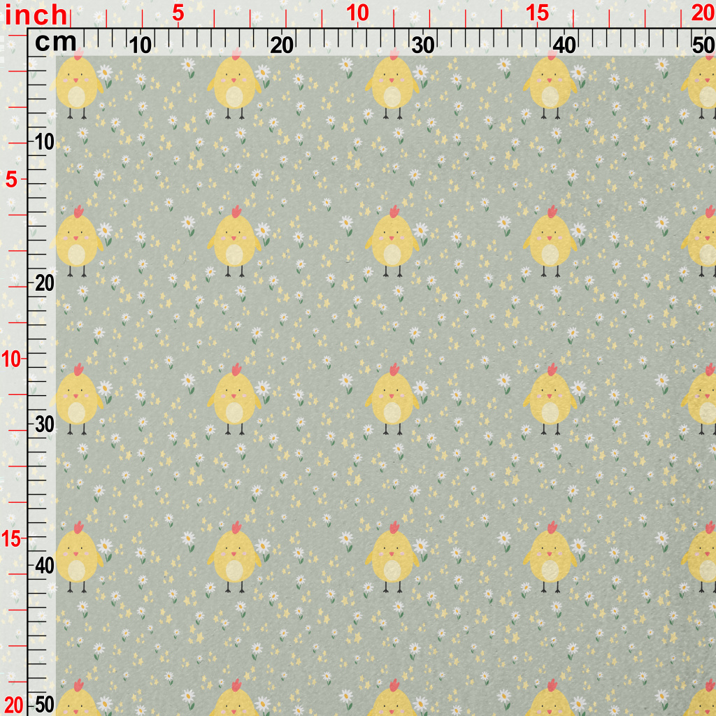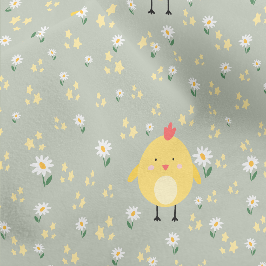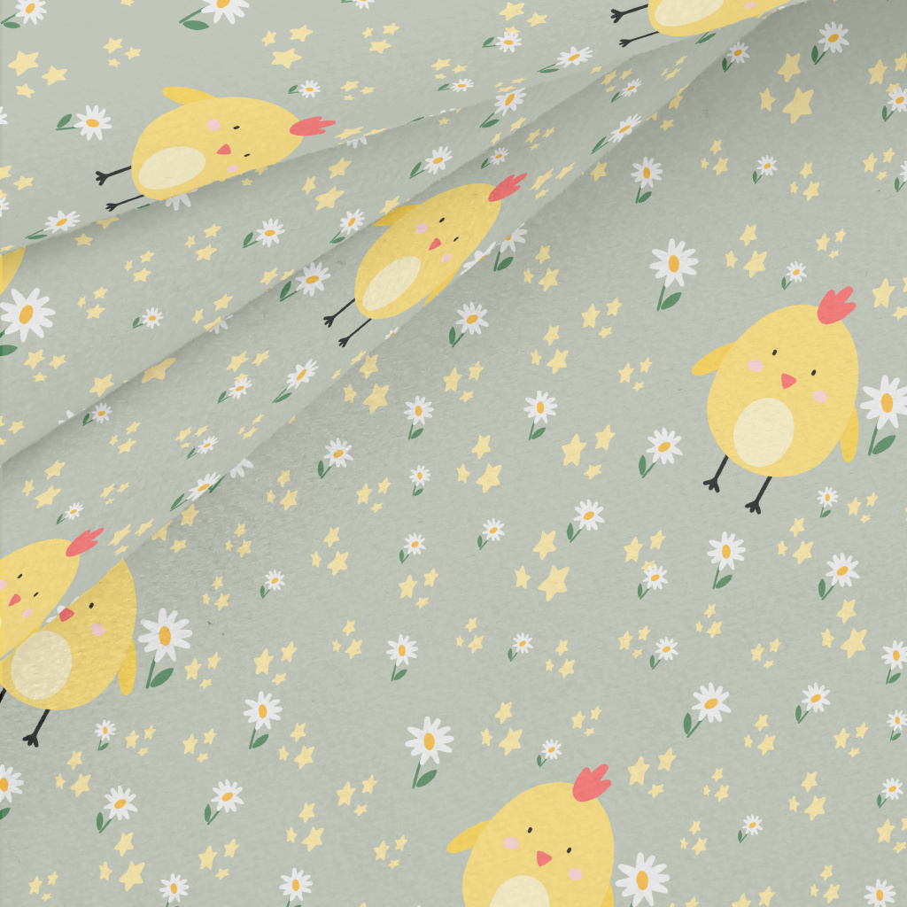 巨大黃色小雞和花朵水晶絨(幅寬160公分)