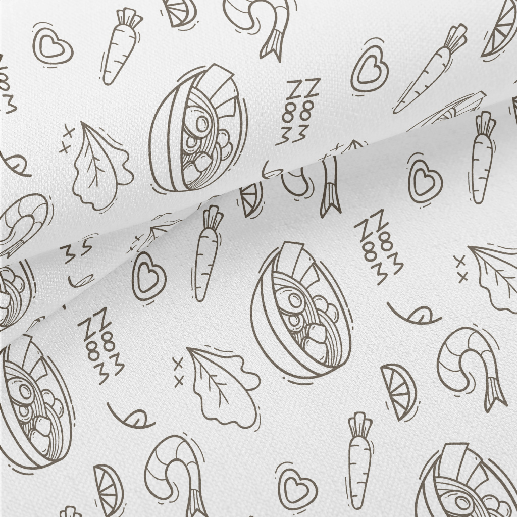塗鴉風格的好吃拉麵竹節麻(幅寬150公分)