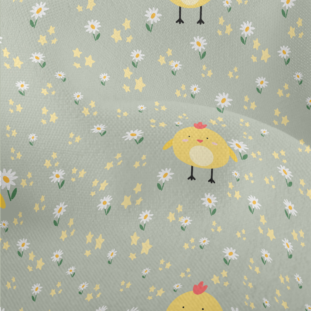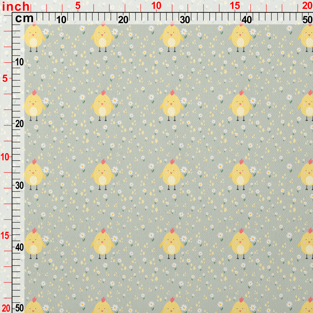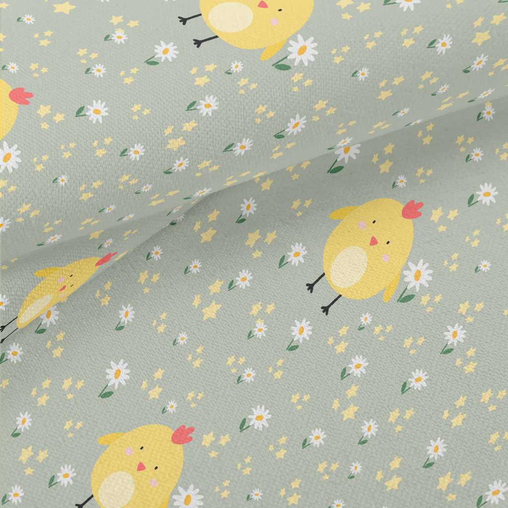 巨大黃色小雞和花朵竹節麻(幅寬150公分)