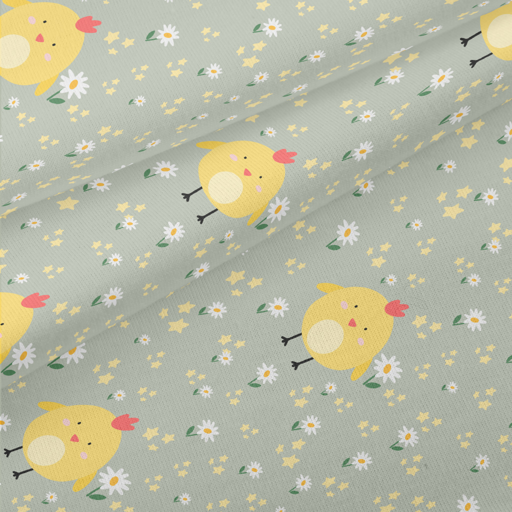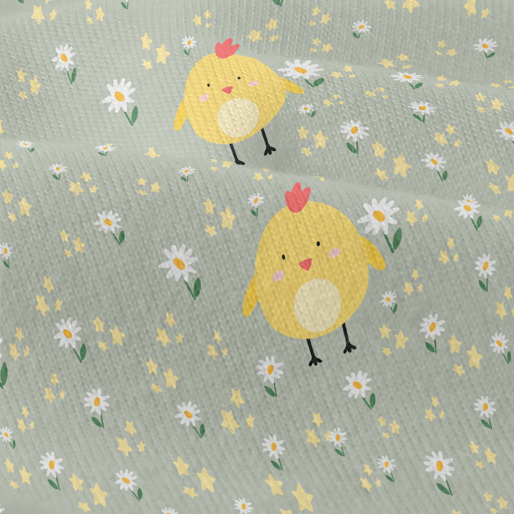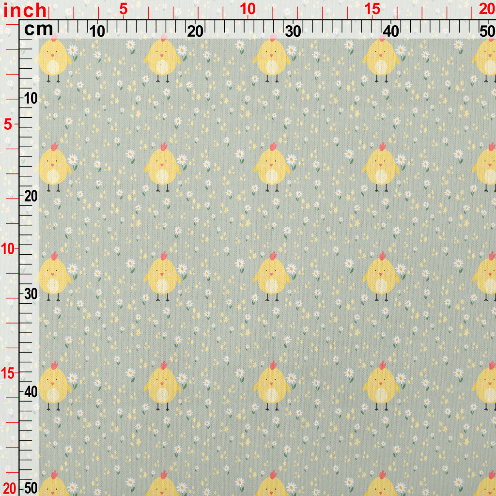 巨大黃色小雞和花朵仿棉布(幅寬150公分)