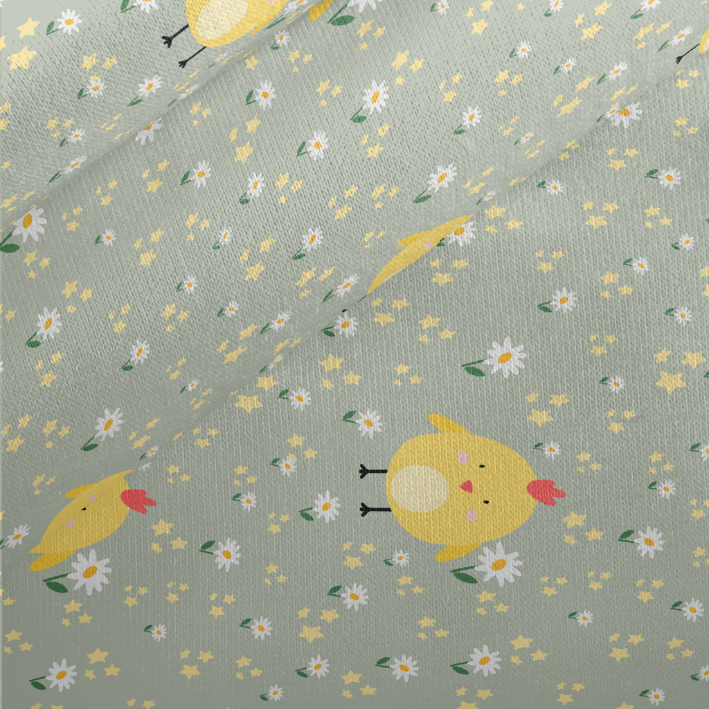 巨大黃色小雞和花朵刷毛布(幅寬150公分)