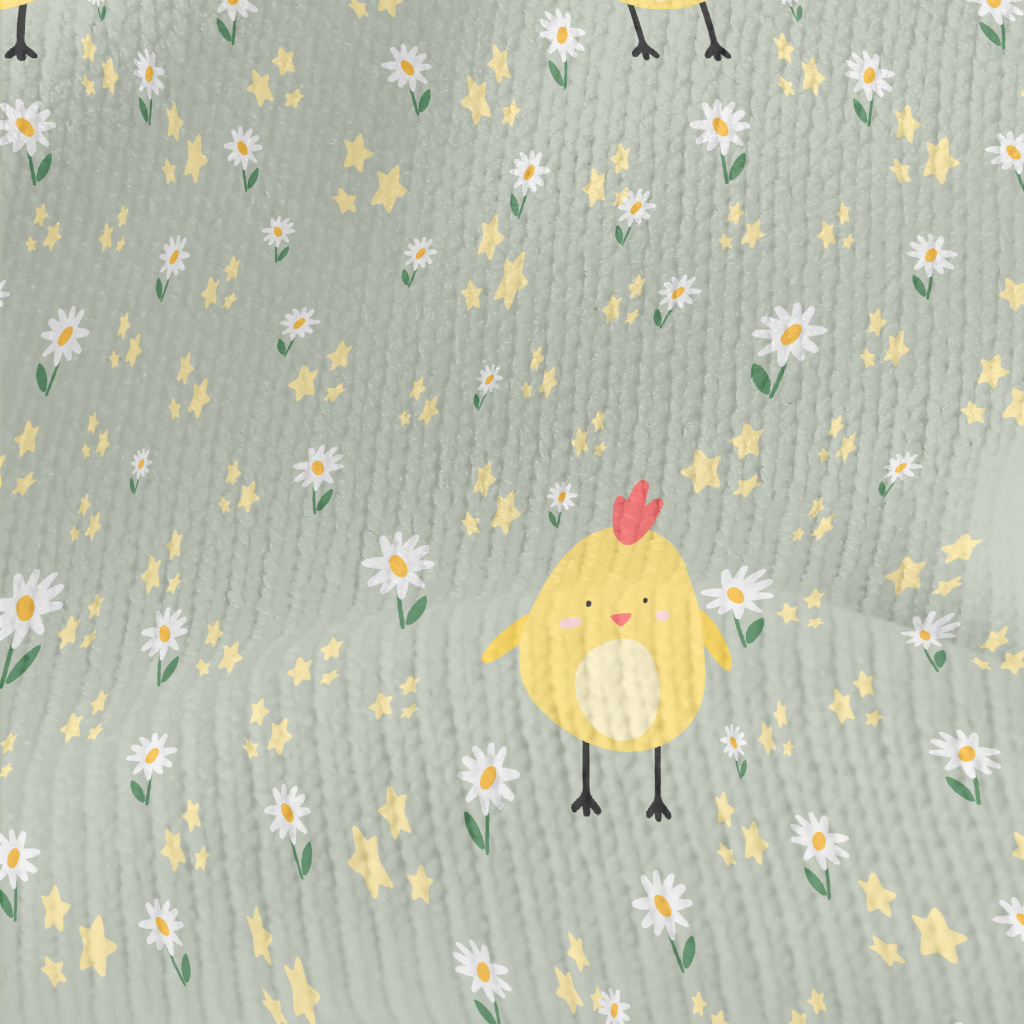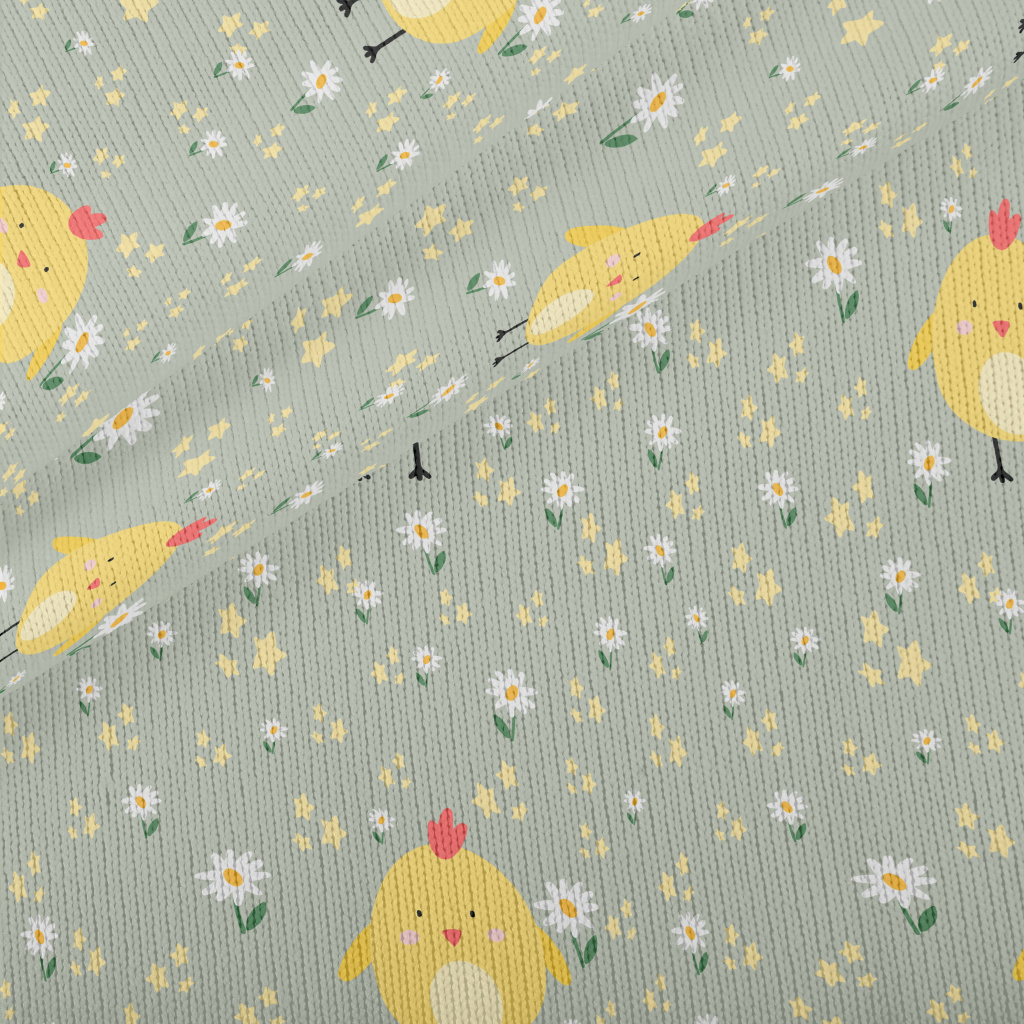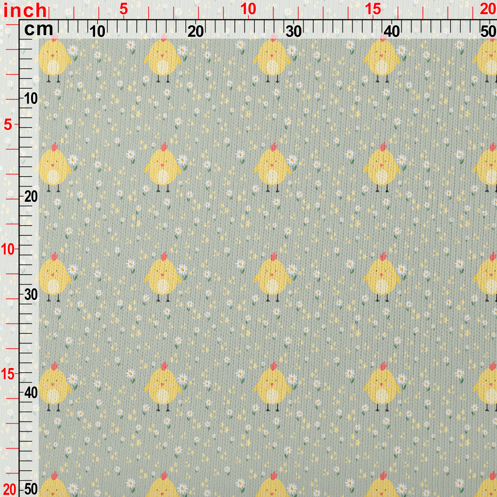 巨大黃色小雞和花朵仿毛衣布(幅寬150公分)
