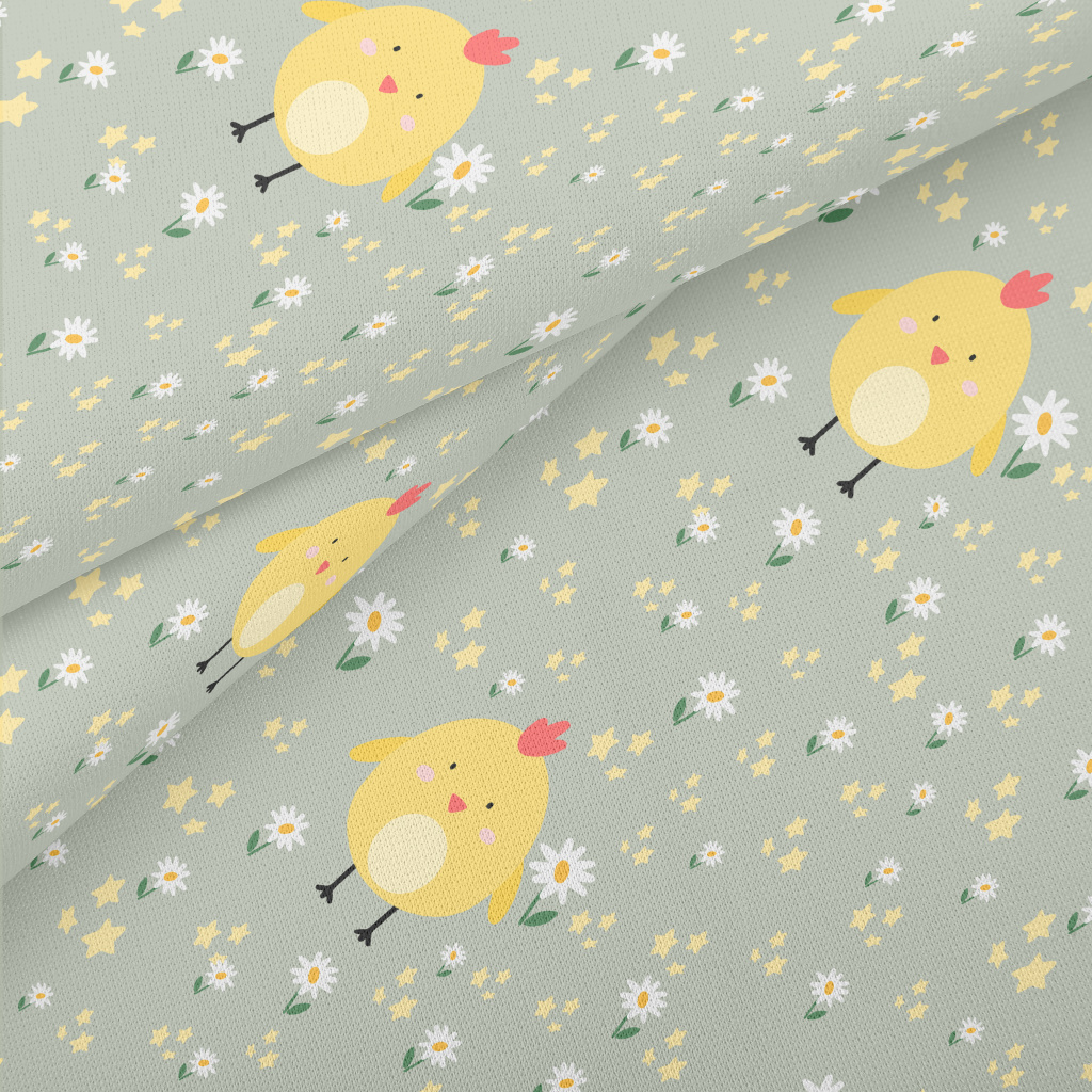 巨大黃色小雞和花朵薄棉布(幅寬150公分)