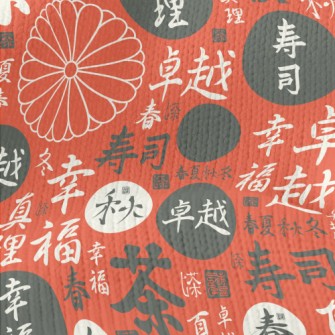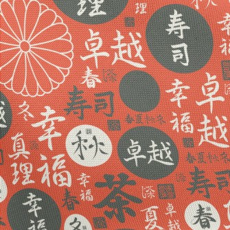 帶有日語和漢字的圖案泡泡布(幅寬160公分)