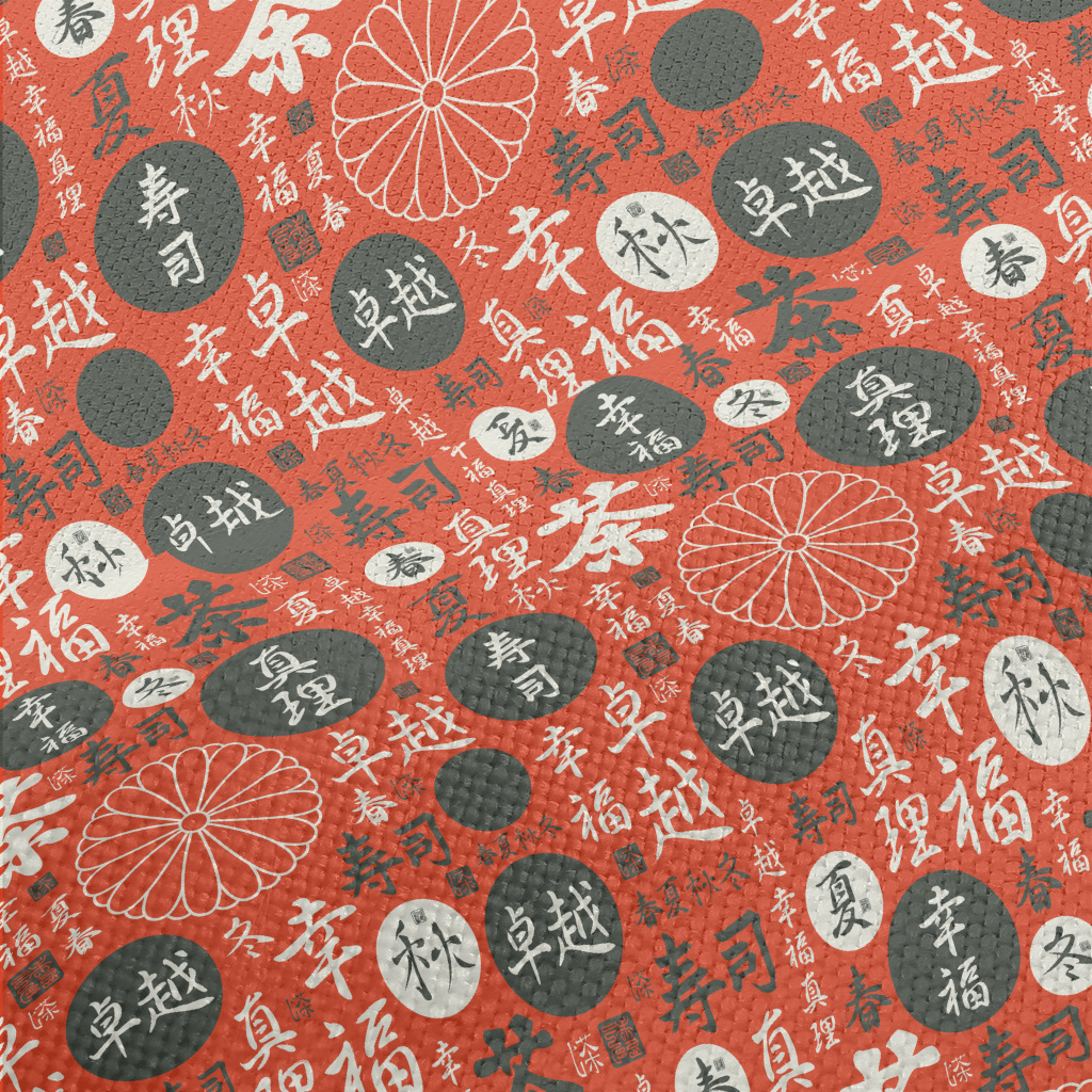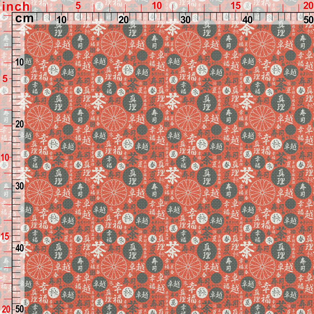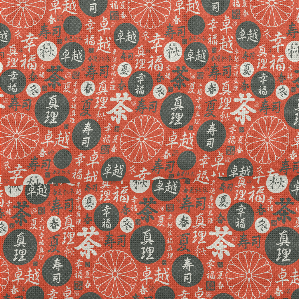 帶有日語和漢字的圖案麻布(幅寬150公分)