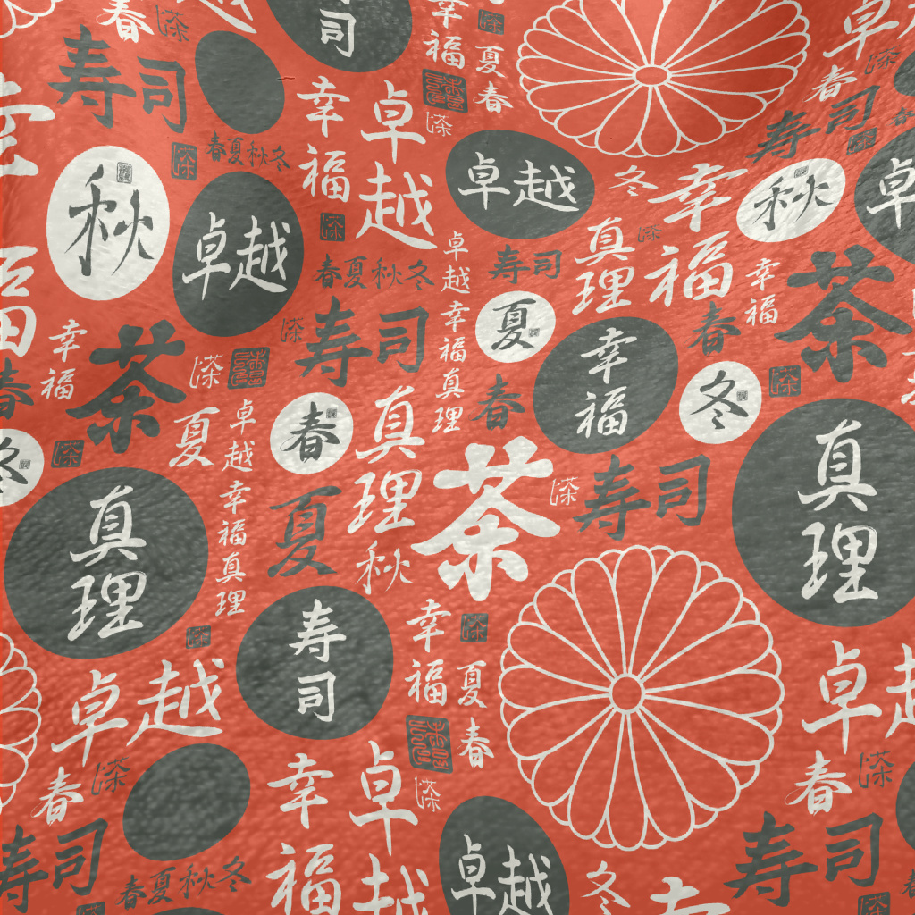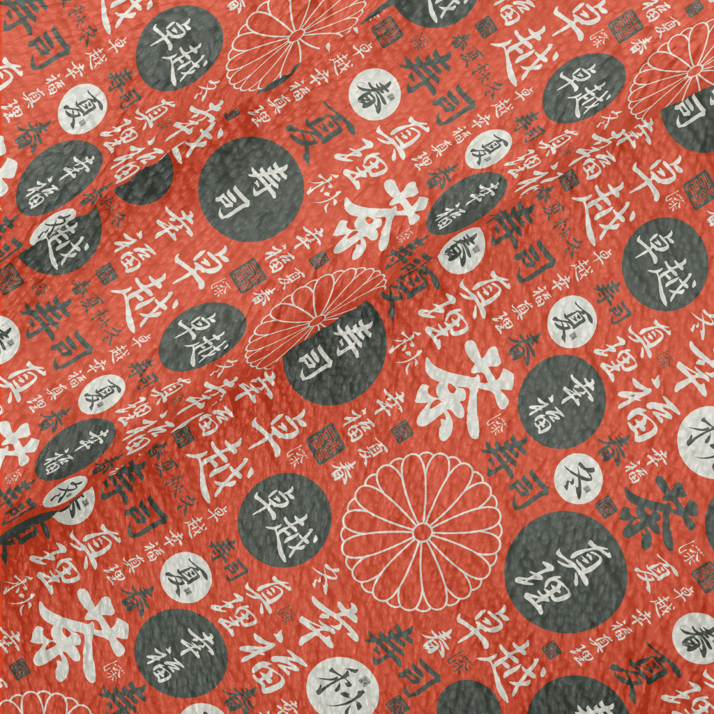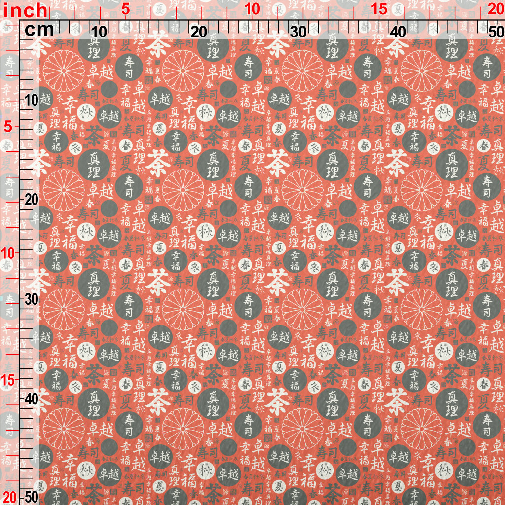 帶有日語和漢字的圖案法蘭絨(幅寬150公分)
