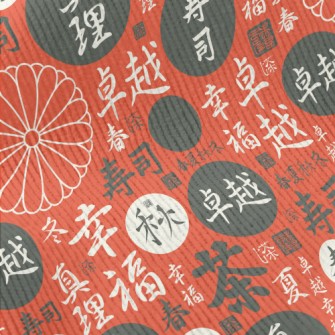 帶有日語和漢字的圖案薄棉布(幅寬150公分)