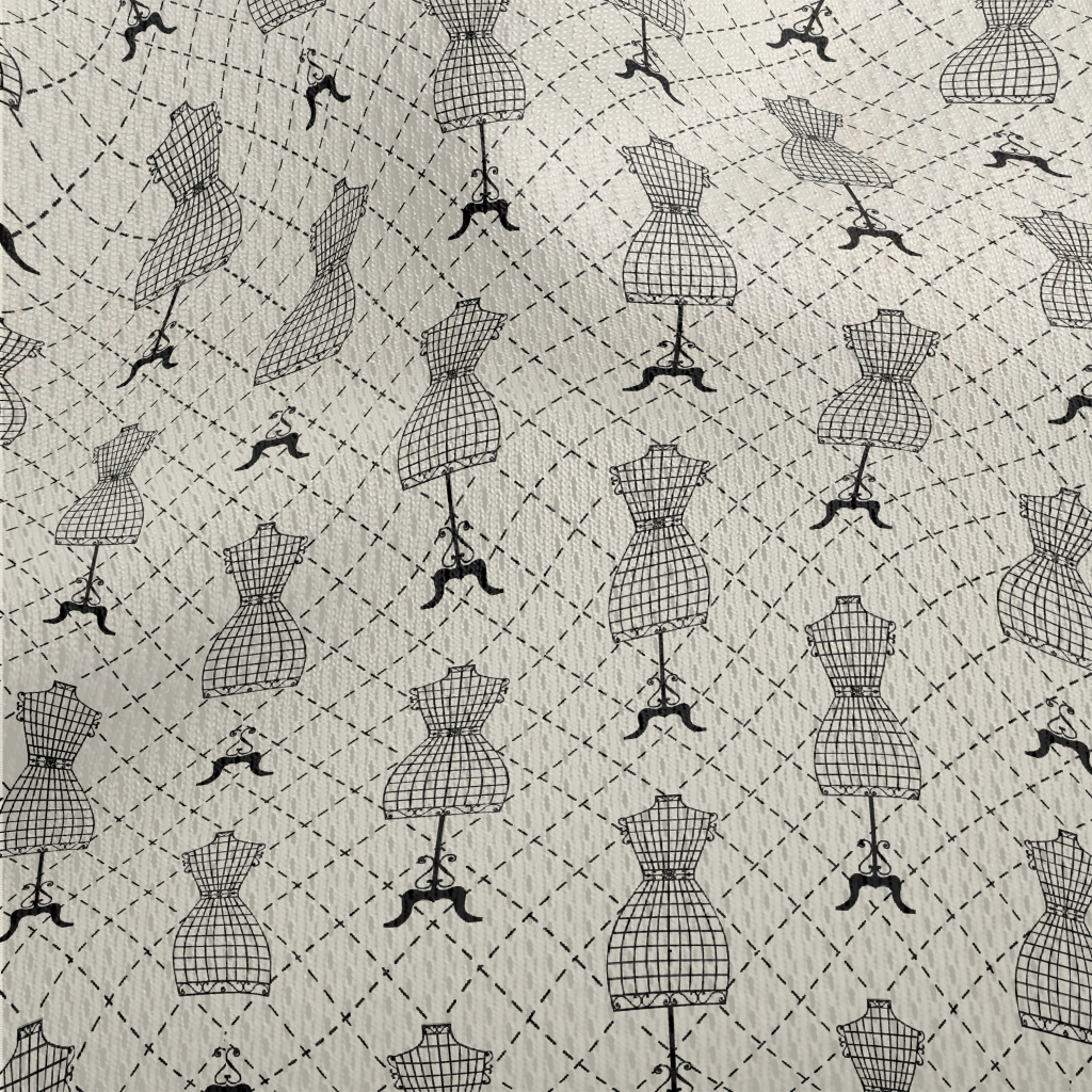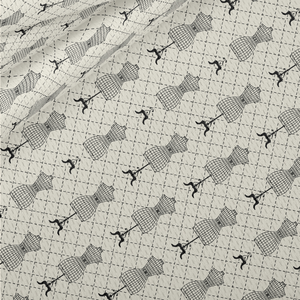 黑色線條的裙子展示鳥眼布(幅寬160公分)