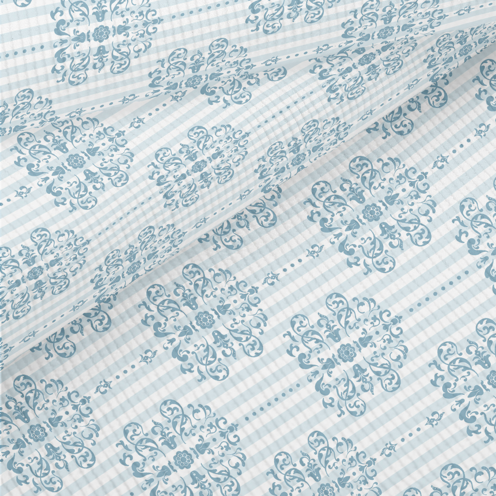寶藍色和白色的花緞燈芯絨(幅寬150公分)