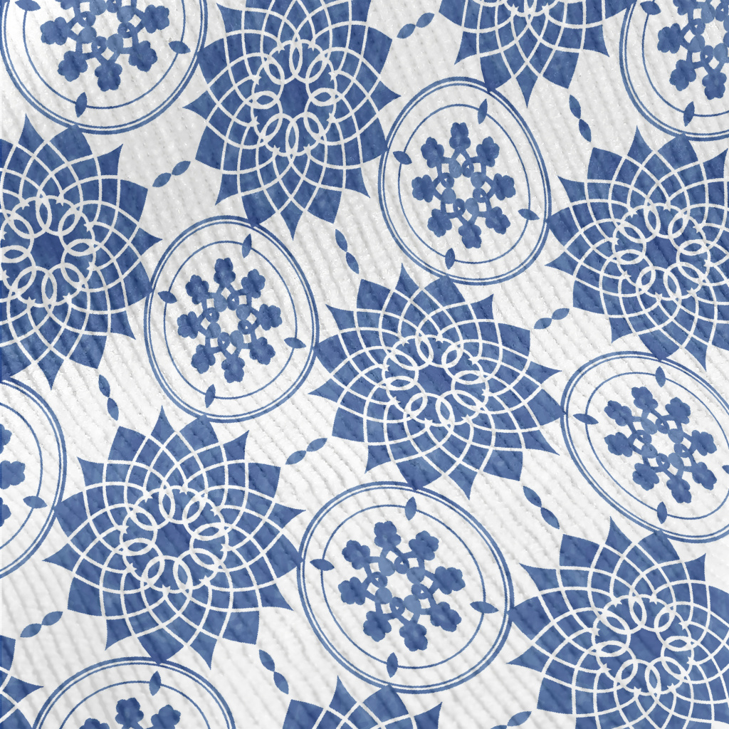 藍色磁磚的團花燈芯絨(幅寬150公分)