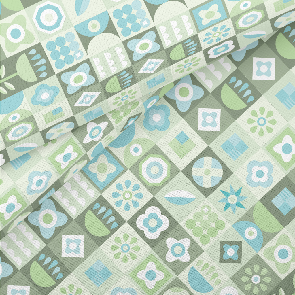 青綠色的花卉格子羅馬布(幅寬160公分)