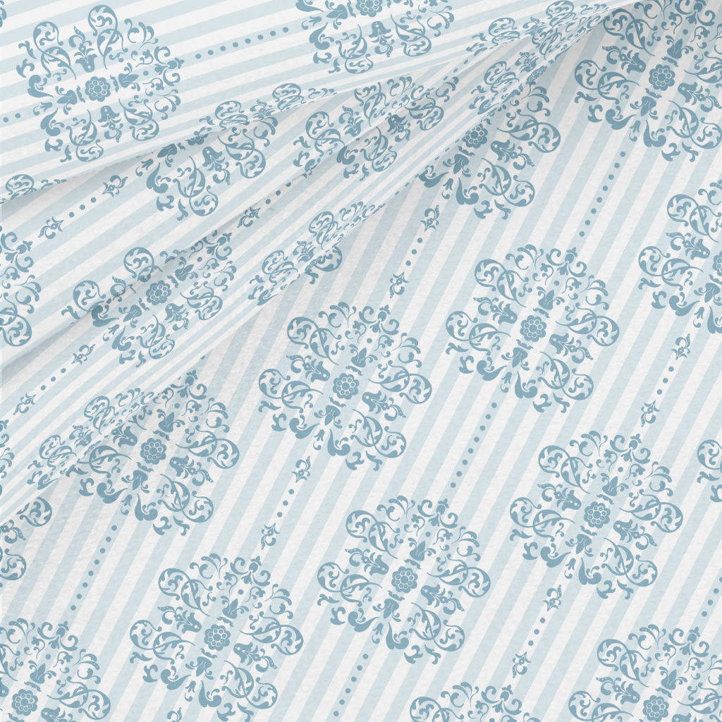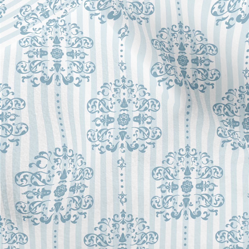 寶藍色和白色的花緞水晶絨(幅寬160公分)