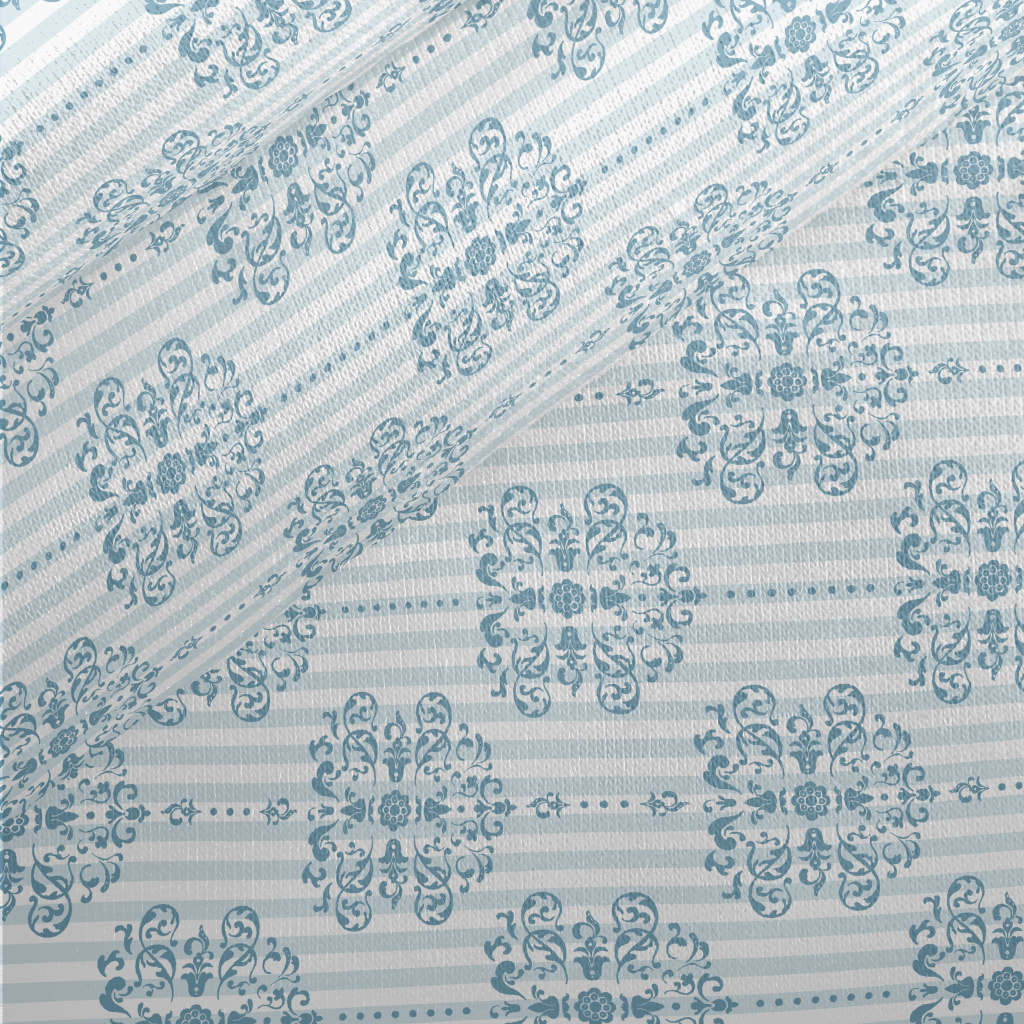 寶藍色和白色的花緞刷毛布(幅寬150公分)