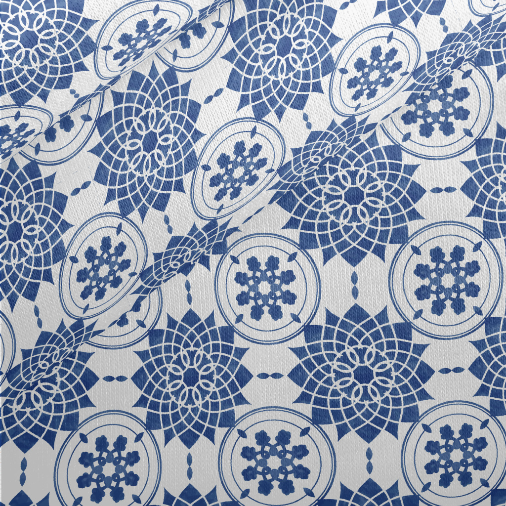 藍色磁磚的團花刷毛布(幅寬150公分)