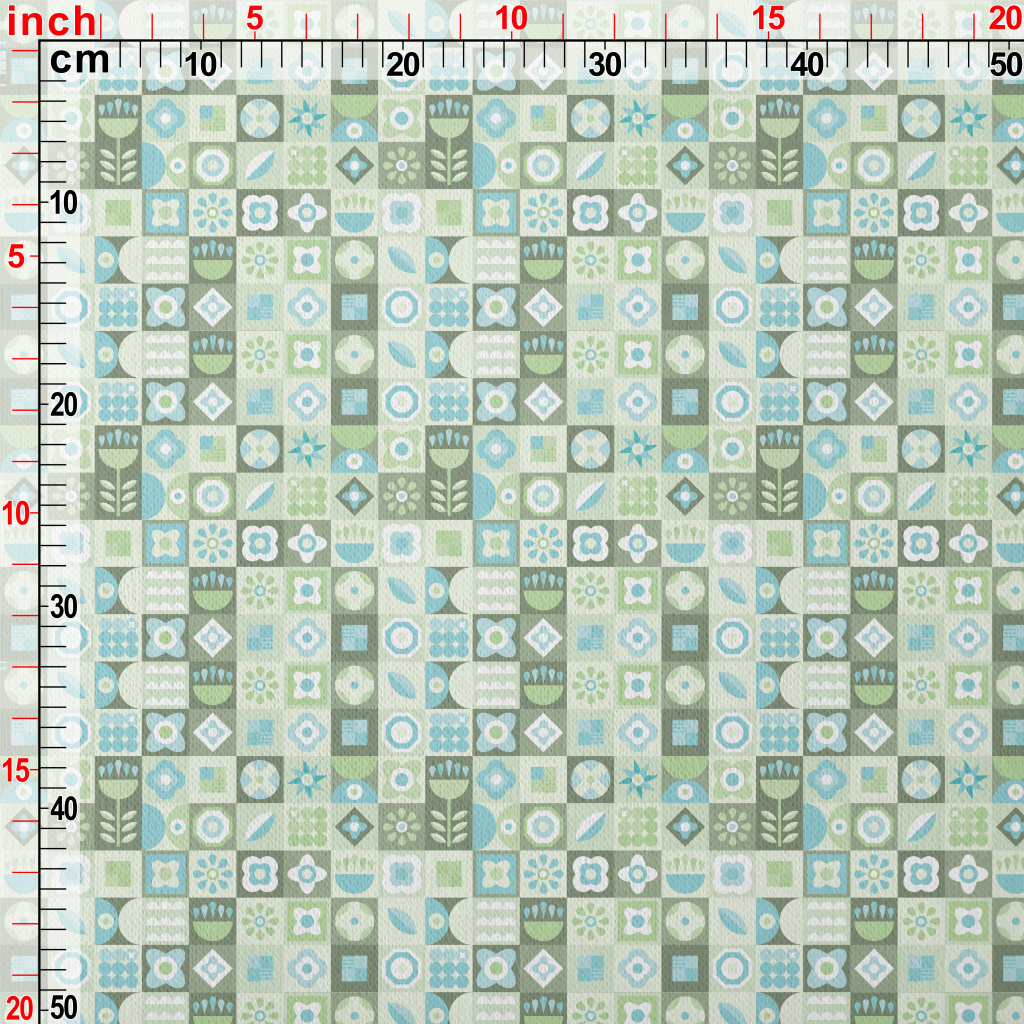 青綠色的花卉格子刷毛布(幅寬150公分)