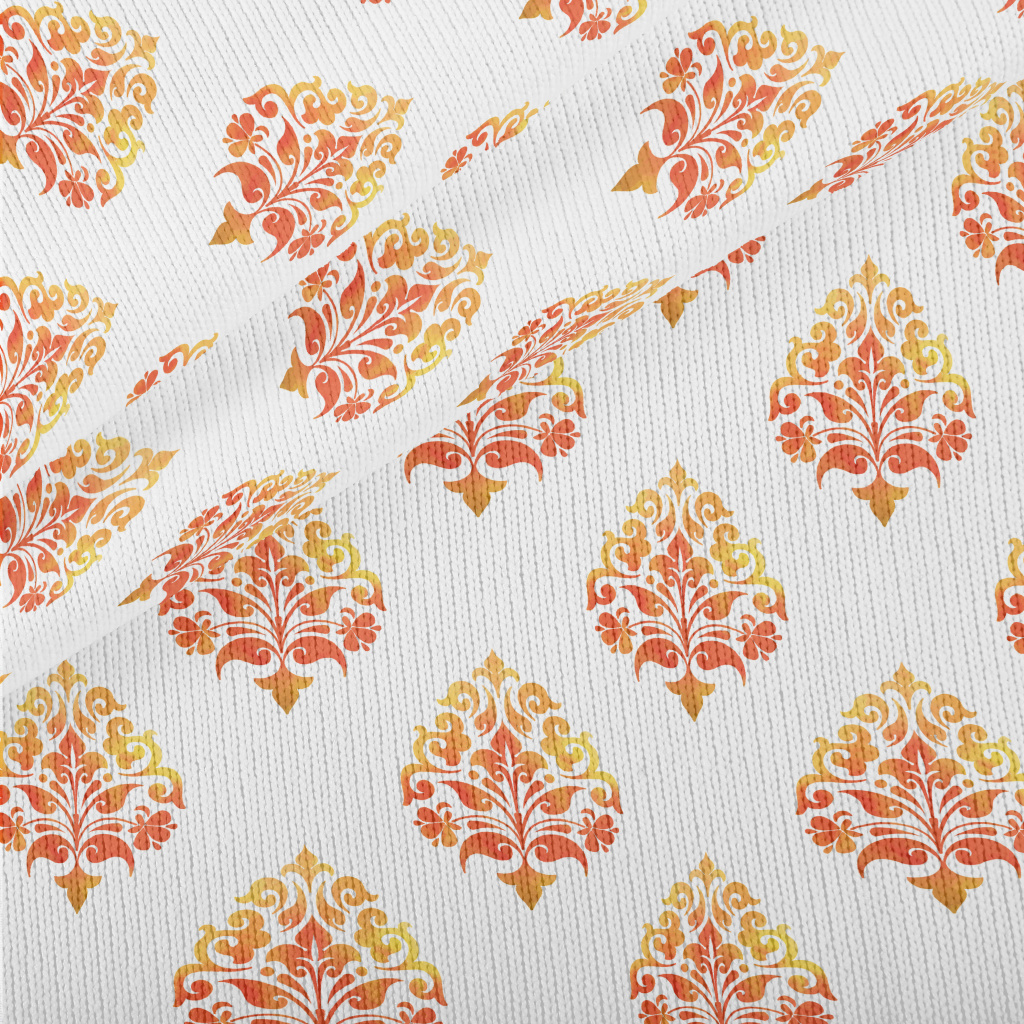 紅橘交錯的花緞仿毛衣布(幅寬150公分)