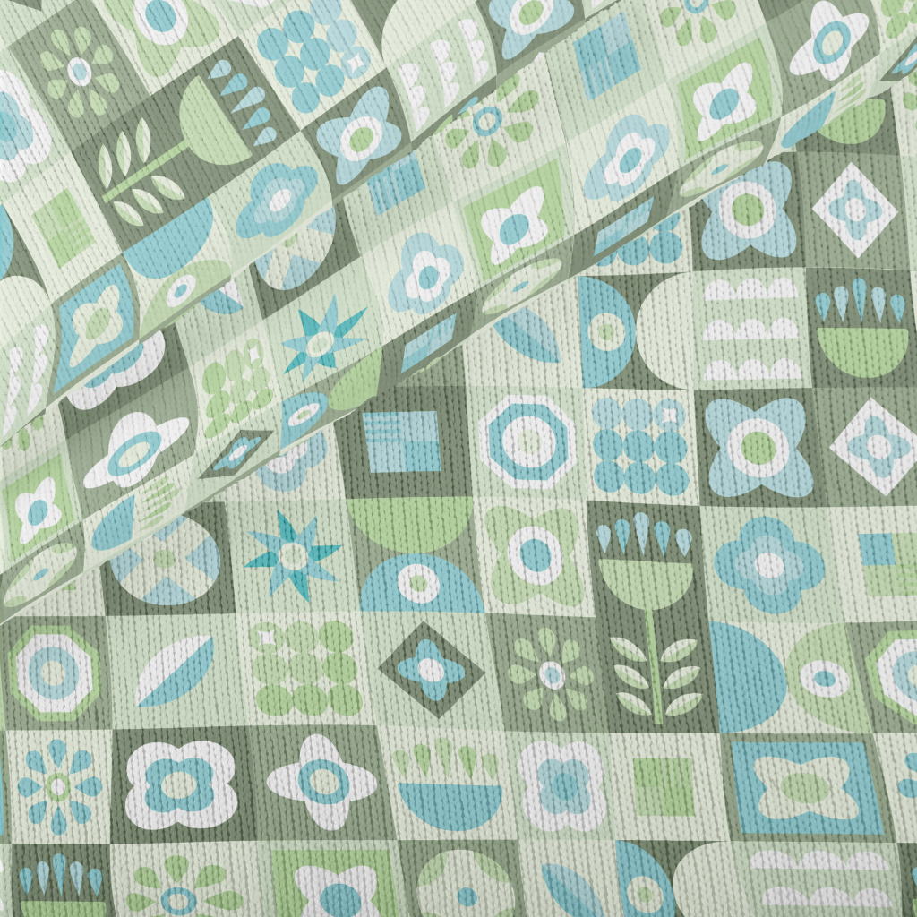 青綠色的花卉格子仿毛衣布(幅寬150公分)