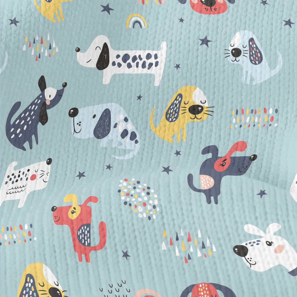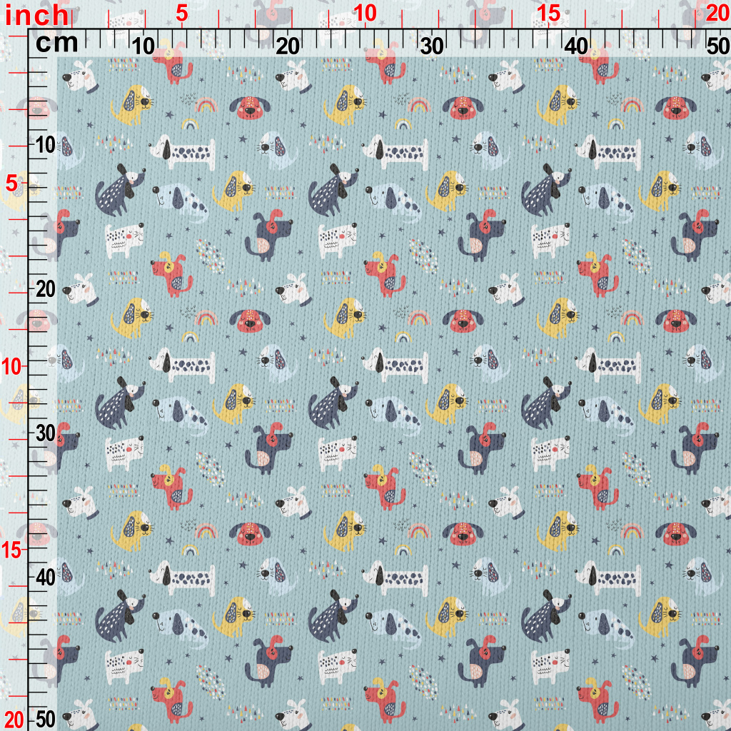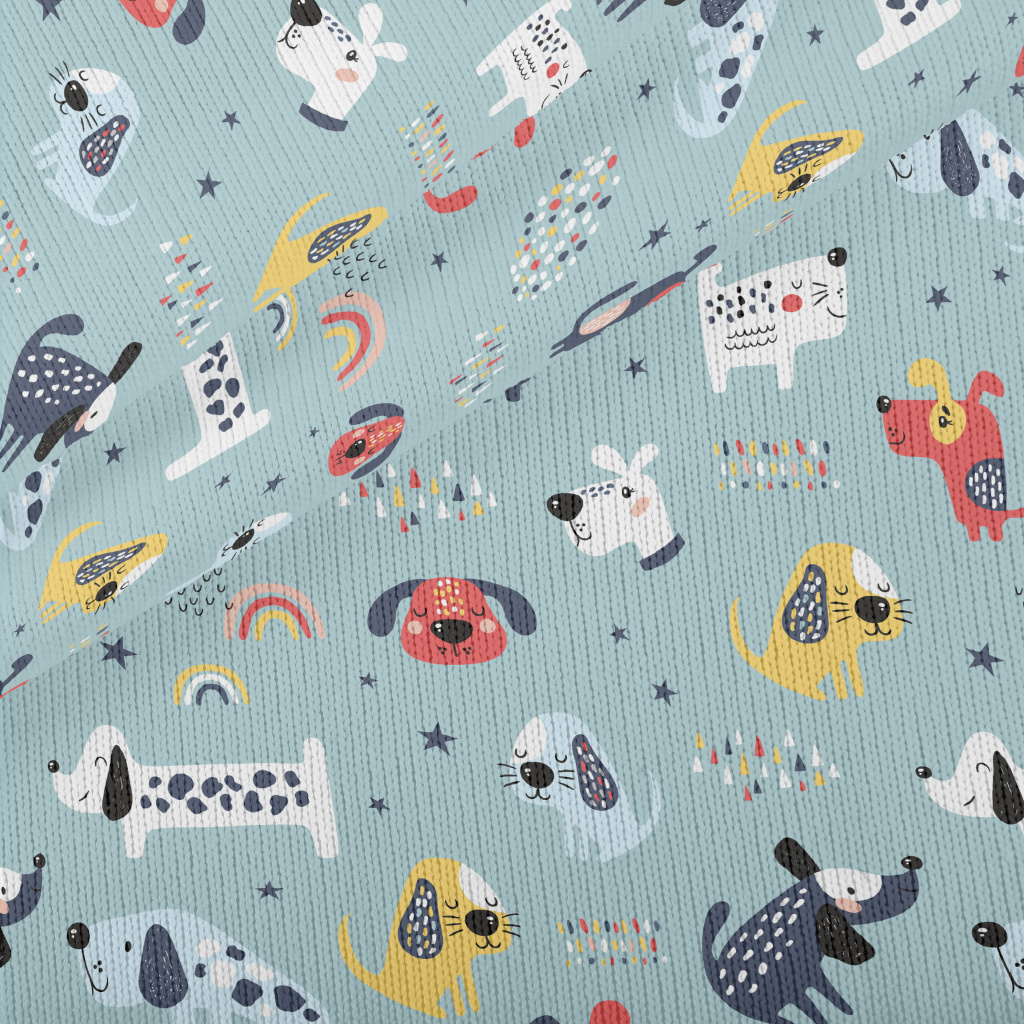色彩鮮明的可愛小狗仿毛衣布(幅寬150公分)