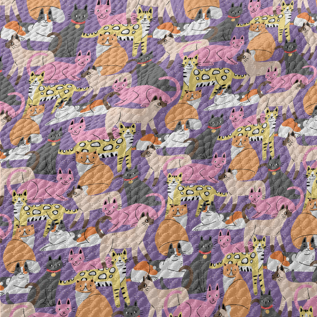 優雅彩色的貓咪們泡泡布(幅寬160公分)