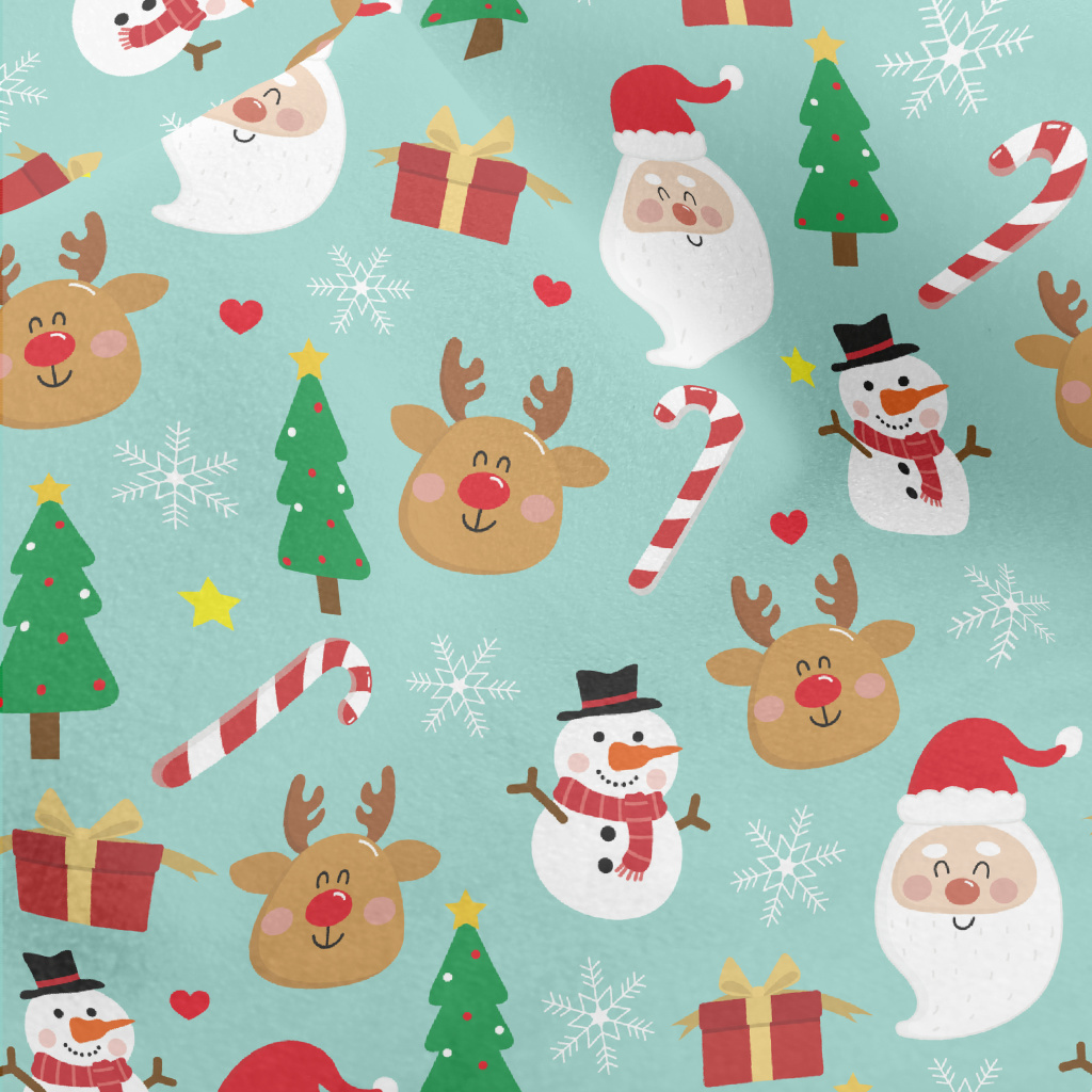 可愛的聖誕老人和聖誕樹水晶絨(幅寬160公分)
